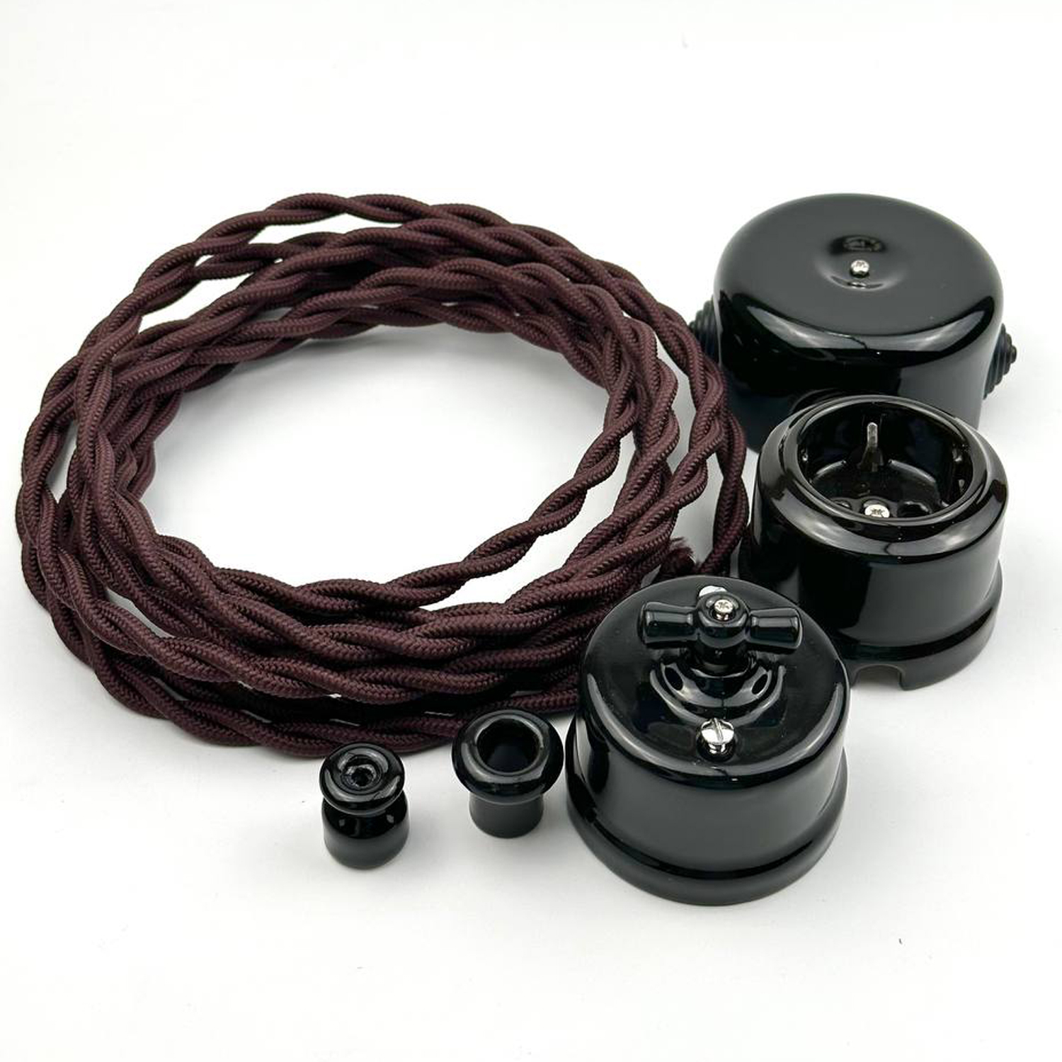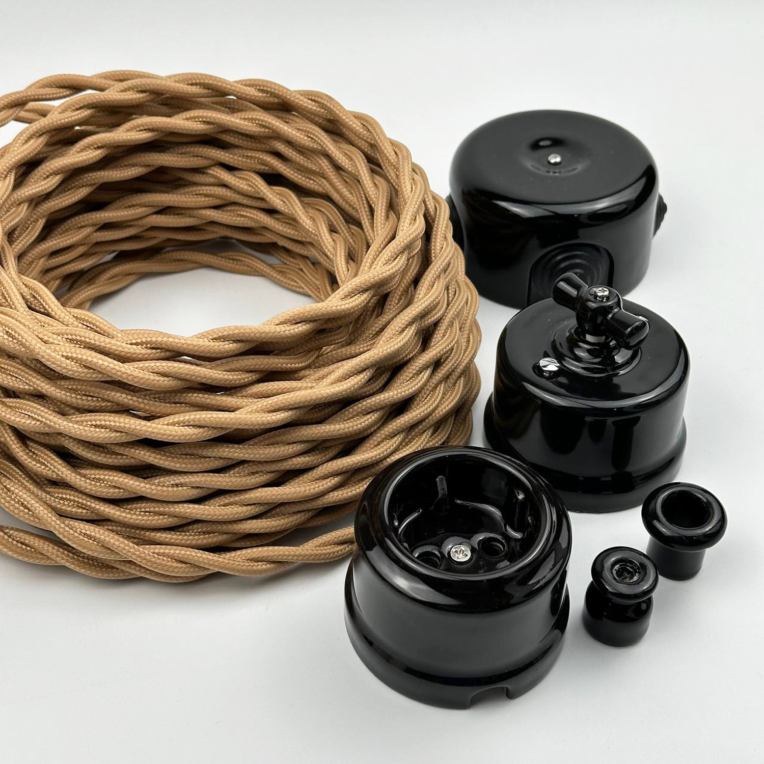 Модель виконана у класичному чорному кольорі, що додає інтер’єру виразності та ідеально поєднується з ретро-елементами: вимикачами, розетками та ізоляторами.