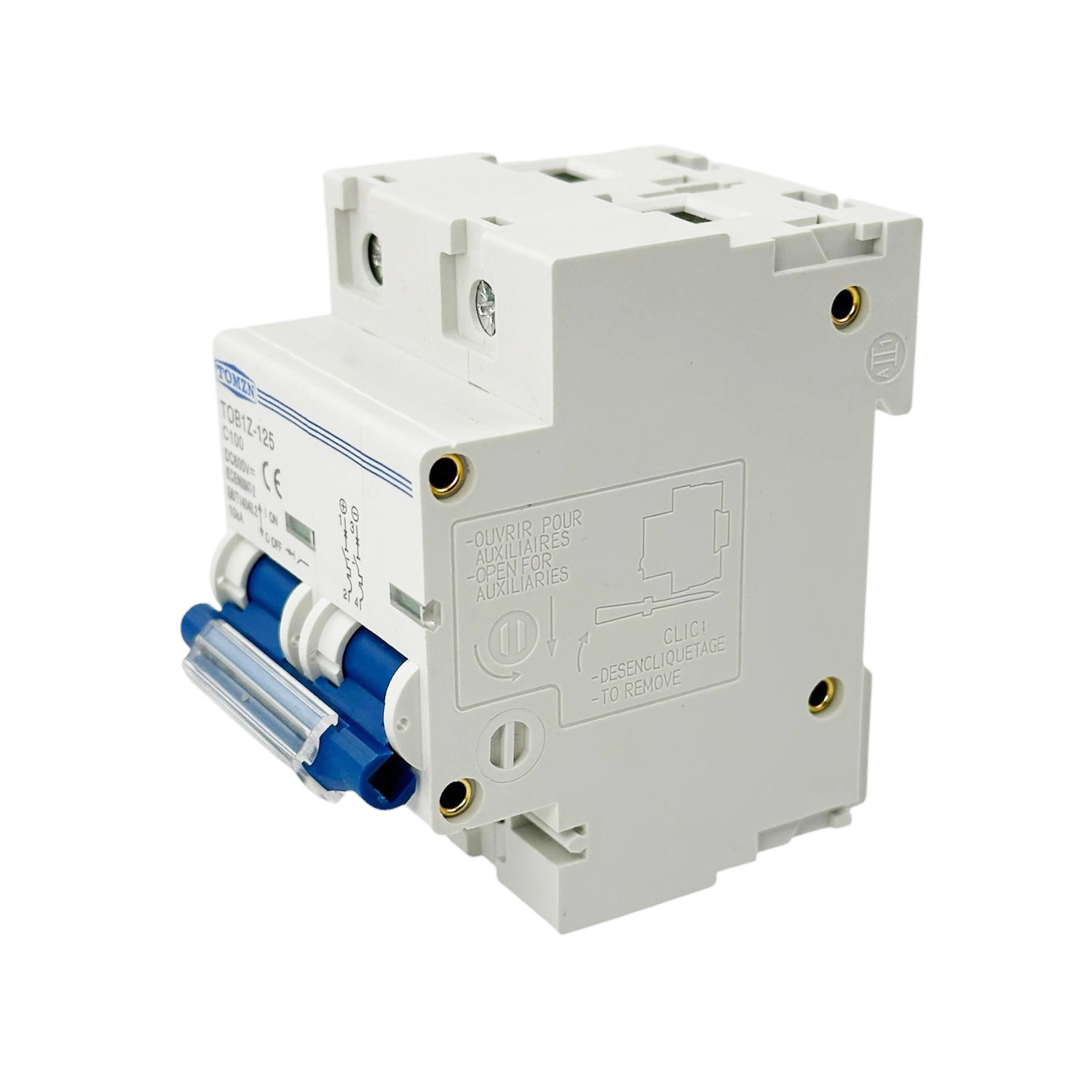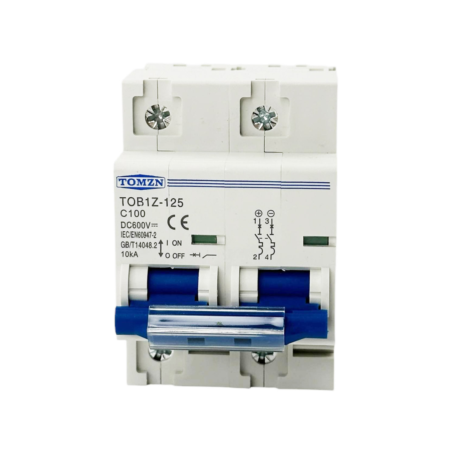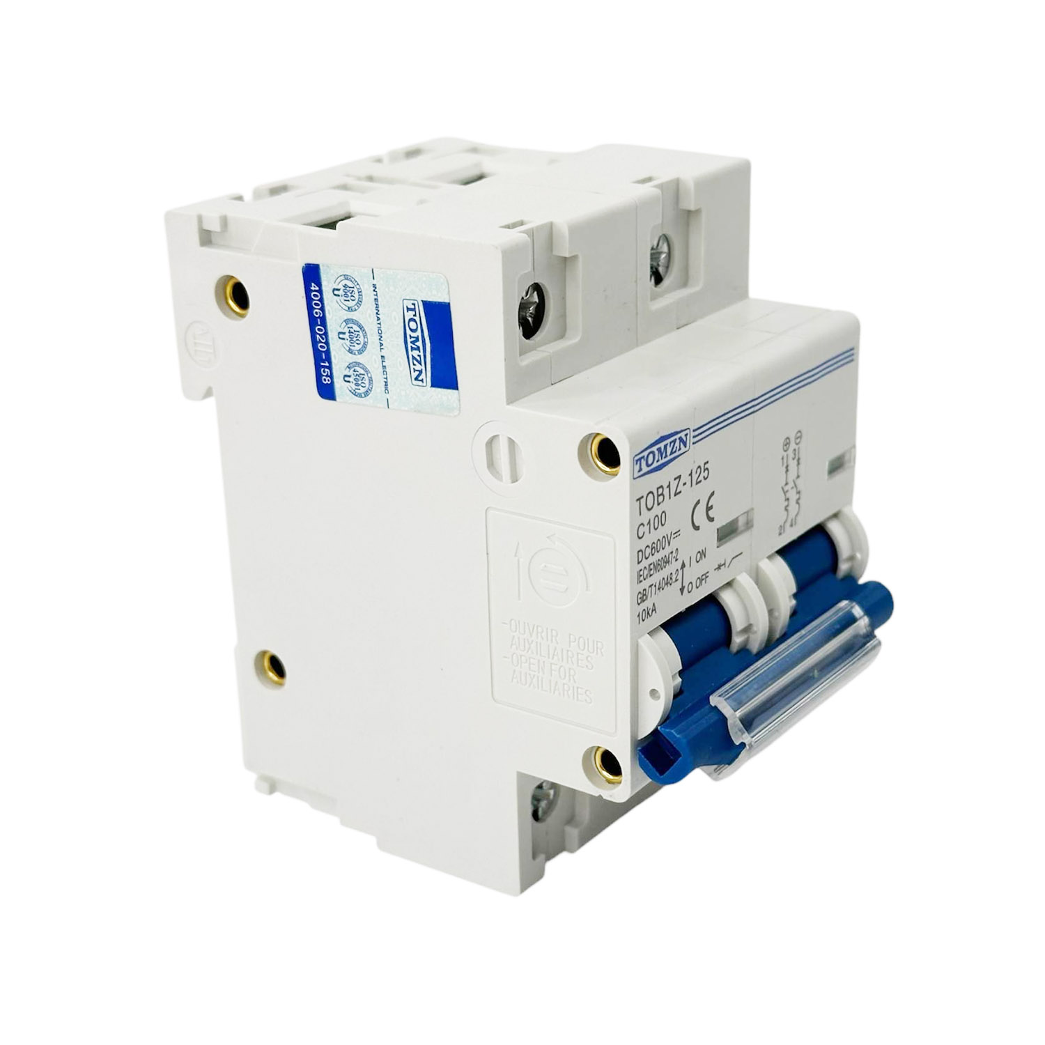Автоматичний двополюсний вимикач TOMZN 2P 100A постійного струму для акумулятора TOB1Z-125 DC 600V 10kA TOMZN