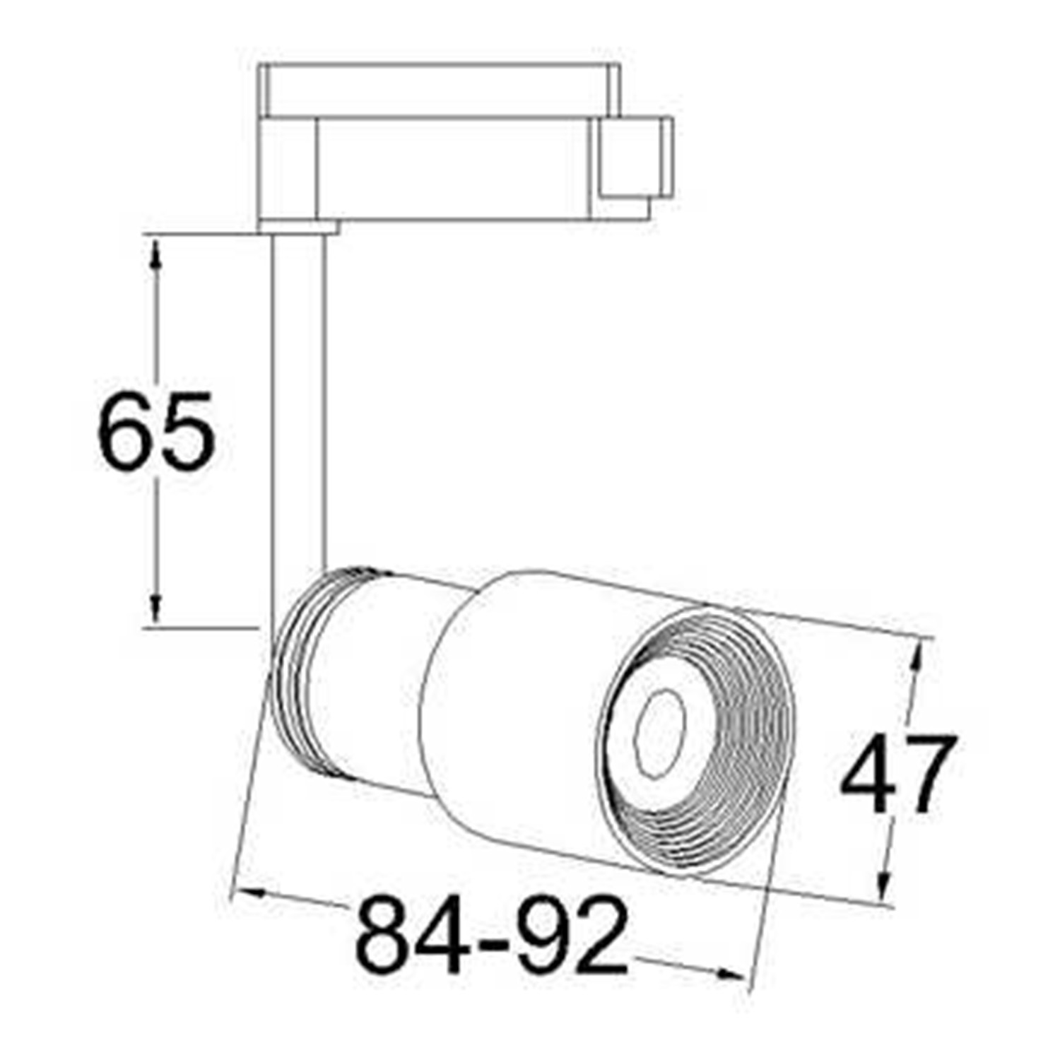 Світильник: діаметр 47мм, довжина від 84 до 92 мм в залежності від налаштування кута розсіювання світла