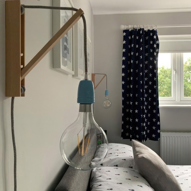 Бра було розроблене таким чином, щоб ви могли підвішувати лампи за допомогою провода: провід не протягується через отвори, а просто намотується на латунні вставки, розташовані на обох кінцях настінного світильника.