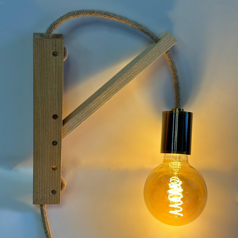 Дерев'яне бра Pinocchio - це не просто настінний світильник, це світильник-трансформер!  Ви можете підвісити будь-яку лампу і самостійно відрегулювати відстань до стіни.