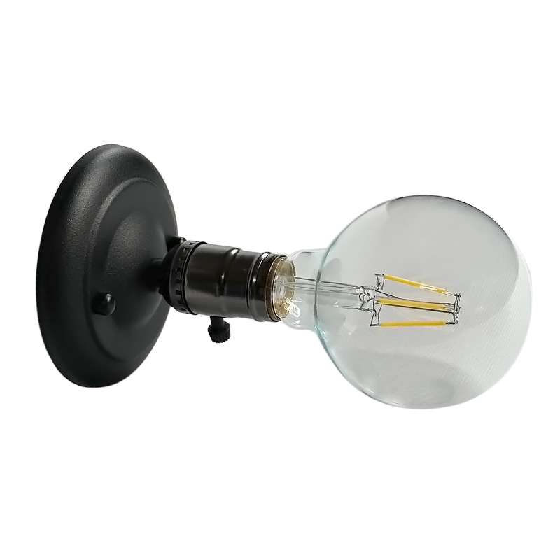 Бра в стилі лофт із вимикачем на патроні у кольорі графіт виконаний із високоякісного металу. Настінне кріплення світильника пофарбоване у чорний колір, патрон світильника у кольорі графіт.