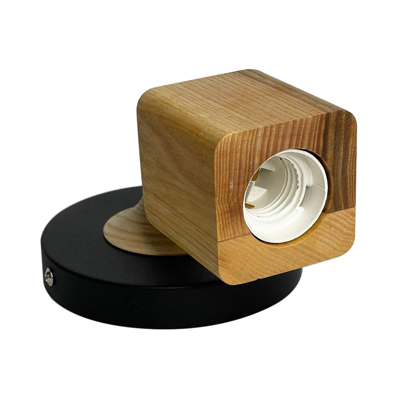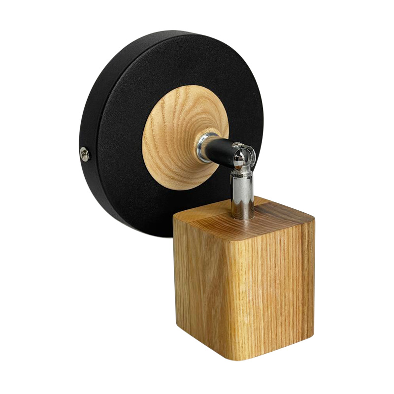 Бра в скандинавському стилі Woody Square з квадратним дерев'яним патроном та хромованим шарніром