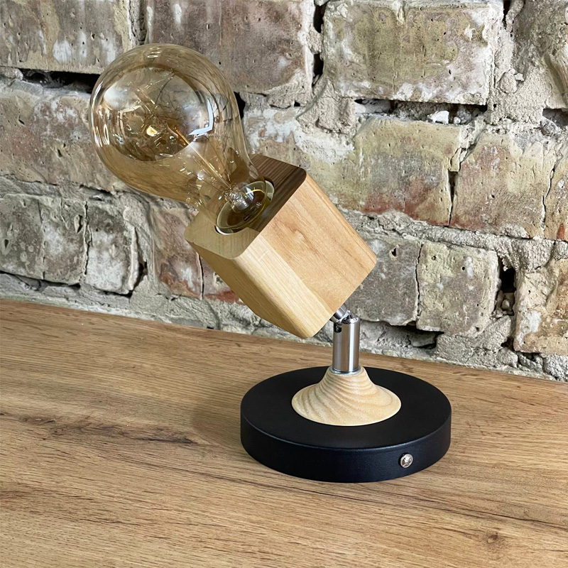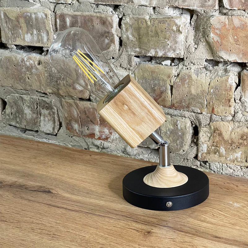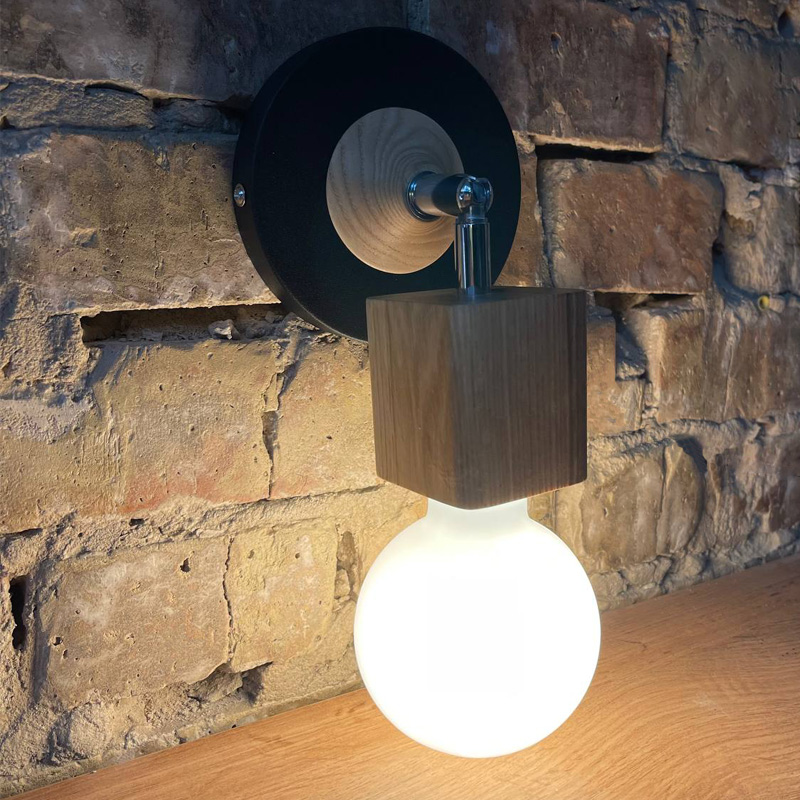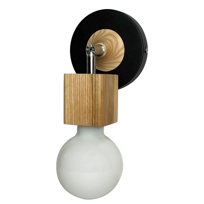 Бра Woody Square - стильне та зручне вінтажне бра в скандиновському стилі з дерев'яною вставкою та дерев'яним квадратним патроном на хромовому шарнірі, яке ідеально виглядатиме з лампочками Едісона.