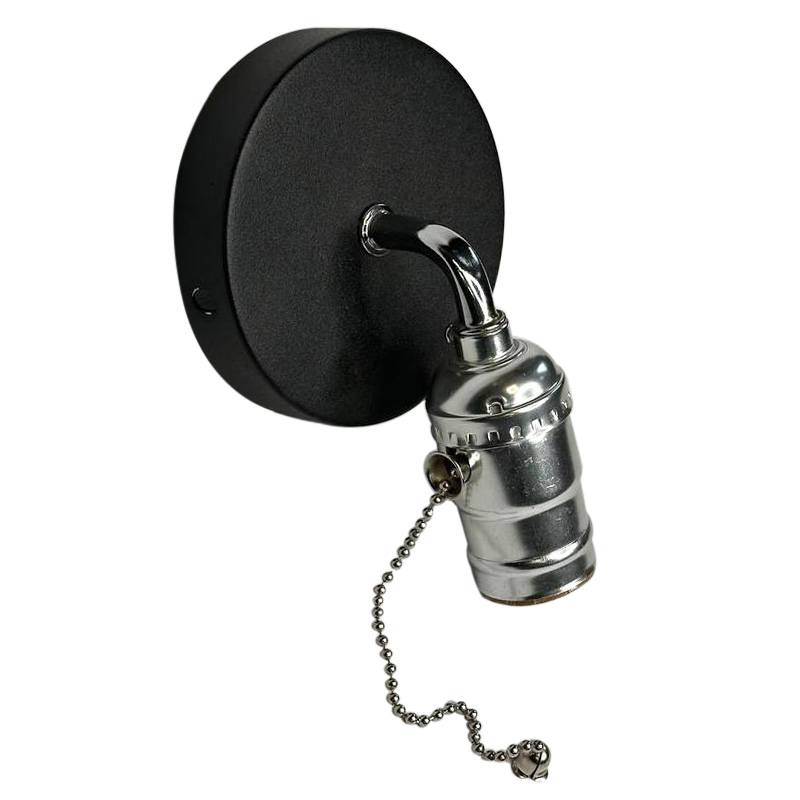 Бра в стилі лофт із вимикачем на патроні виконаний із високоякісного металу. Настінне кріплення світильника пофарбоване у чорний колір, патрон світильника у кольорі хром. Таке бра чудово виглядатиме в кафе, барі, ресторані, готелі, а також у приміщеннях у стилі лофт. Встановлений у спальні чи передпокої, біля журнального столика чудово підходить для читання книг.