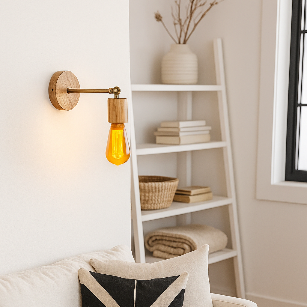 Бра з поворотним шарніром Ember Wood з дерев'яним патроном та стельовим кріпленням