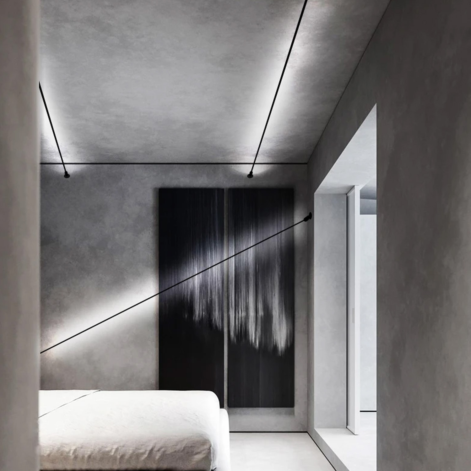 Система лінійного освітлення SKYLINE — це тонка лінія, що світиться, яка розтягується від стіни до стіни на 4 метри завдовжки. Цей вид освітлення принципово новий і вимагає дизайнерського підходу. Дуже важливо продумати і закласти висновки живлення зі стіни заздалегідь, на етапі проектування. Колір та яскравість свічення залежатимуть від обраної світлодіодної стрічки.