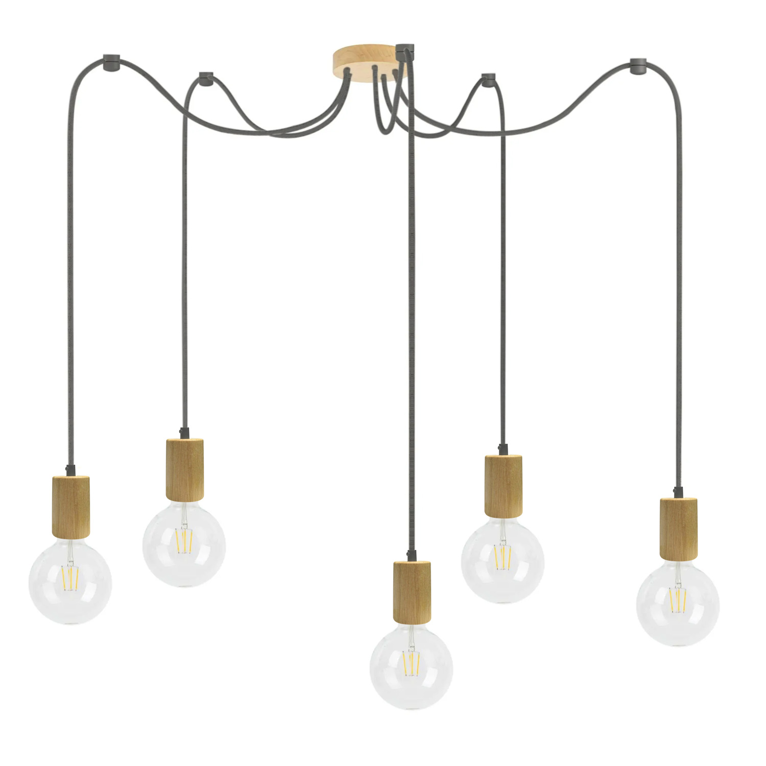 Люстра павук в скандинавському стилі на 5 ламп з дерев'яним патроном чорна