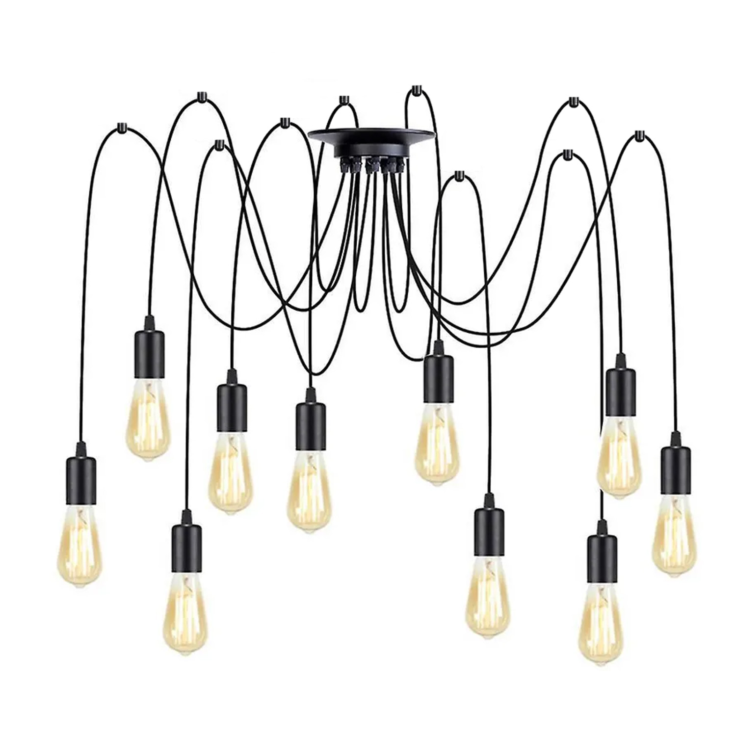 Люстра-павук на 10 ламп Едісона з металевими патронами чорна