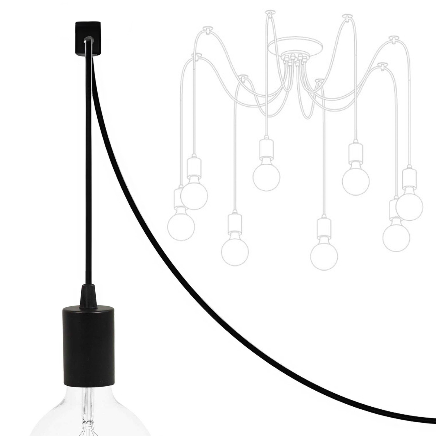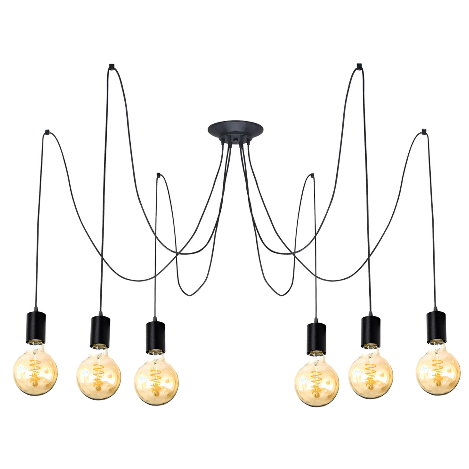 Люстра-Павук в стилі лофт на 6 ламп (чорна) для ламп Едисона (чорний металевий патрон)