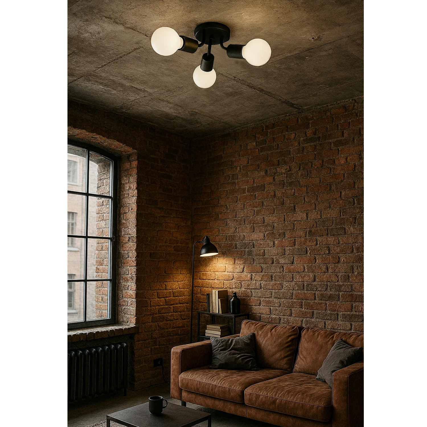 Металева стельова люстра Сentipede у скандинавському стилі реалізована у вигляді диска - стельового кріплення з розміщеними на ньому ніжками з патронами E27 для лампочок. Це, на перший погляд, простий виріб є оригінальним симбіозом стилю і витонченості.