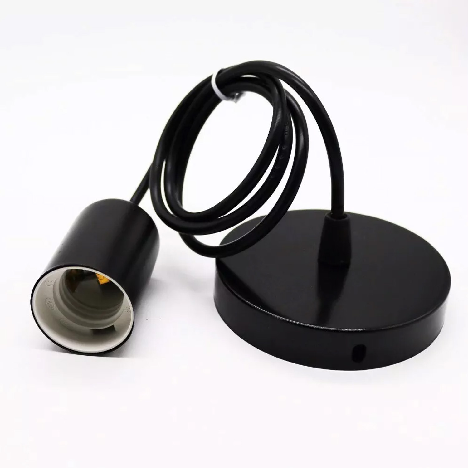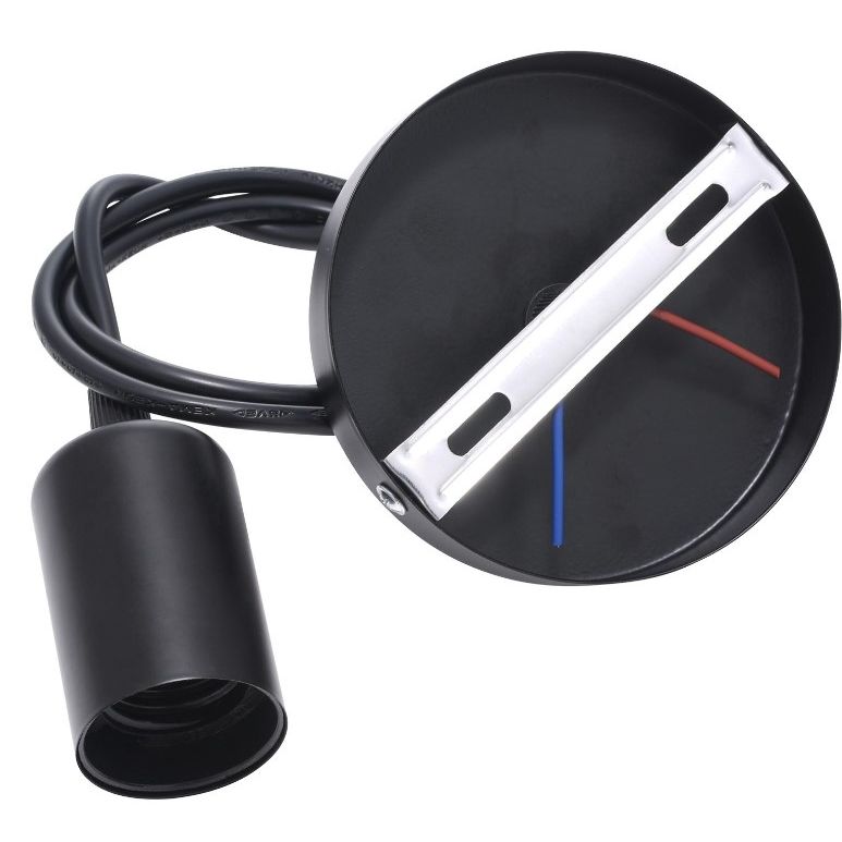 - Металевий патрон Е27 чорний з фіксатором проводу