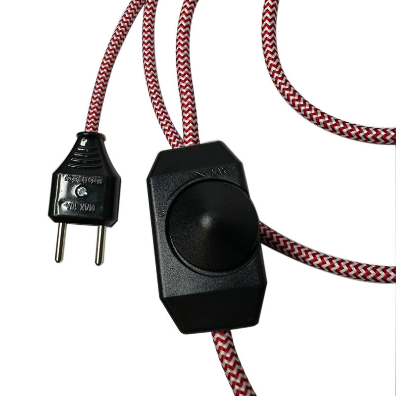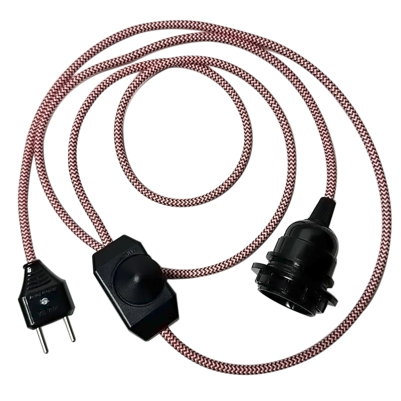 Підвісний світильник у стилі лофт з червоно-білим ретро проводом, карболітовим патроном E27, вилкою та димером-вимикачем