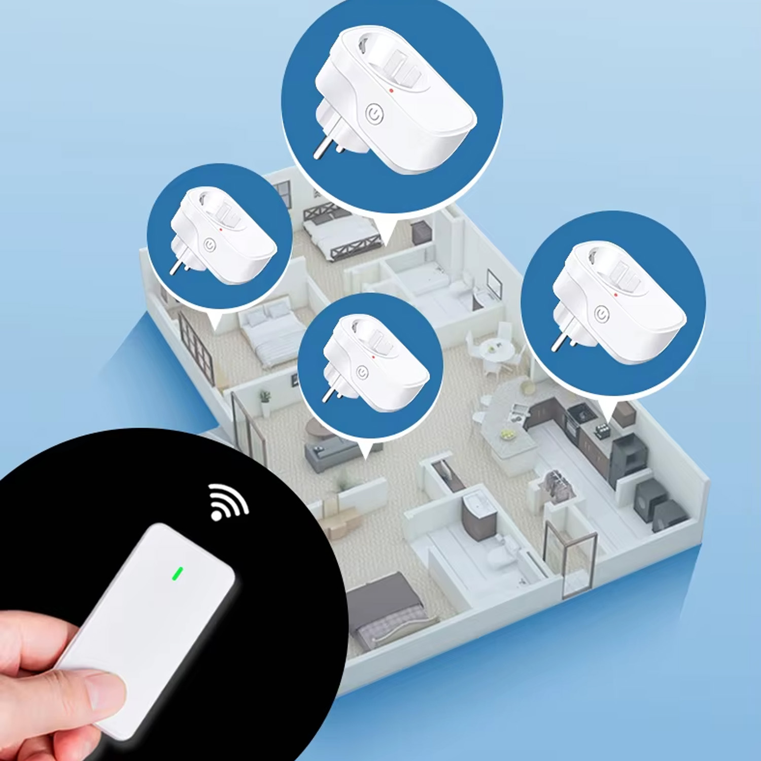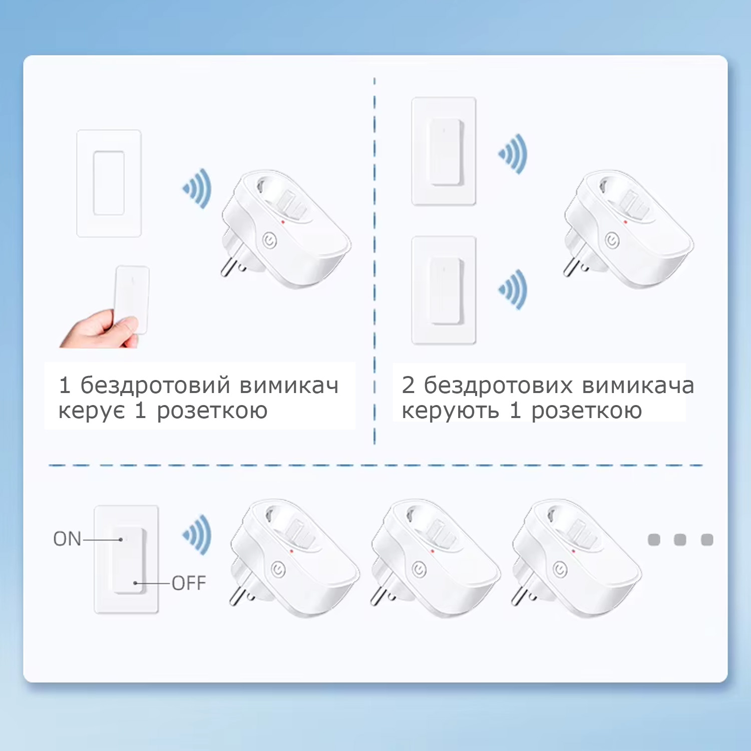 Дозволяє вмикати та вимикати світло або техніку дистанційно, без прокладання проводів і складного монтажу. Ідеально підходить для дому, офісу, магазинів чи тимчасових рішень.