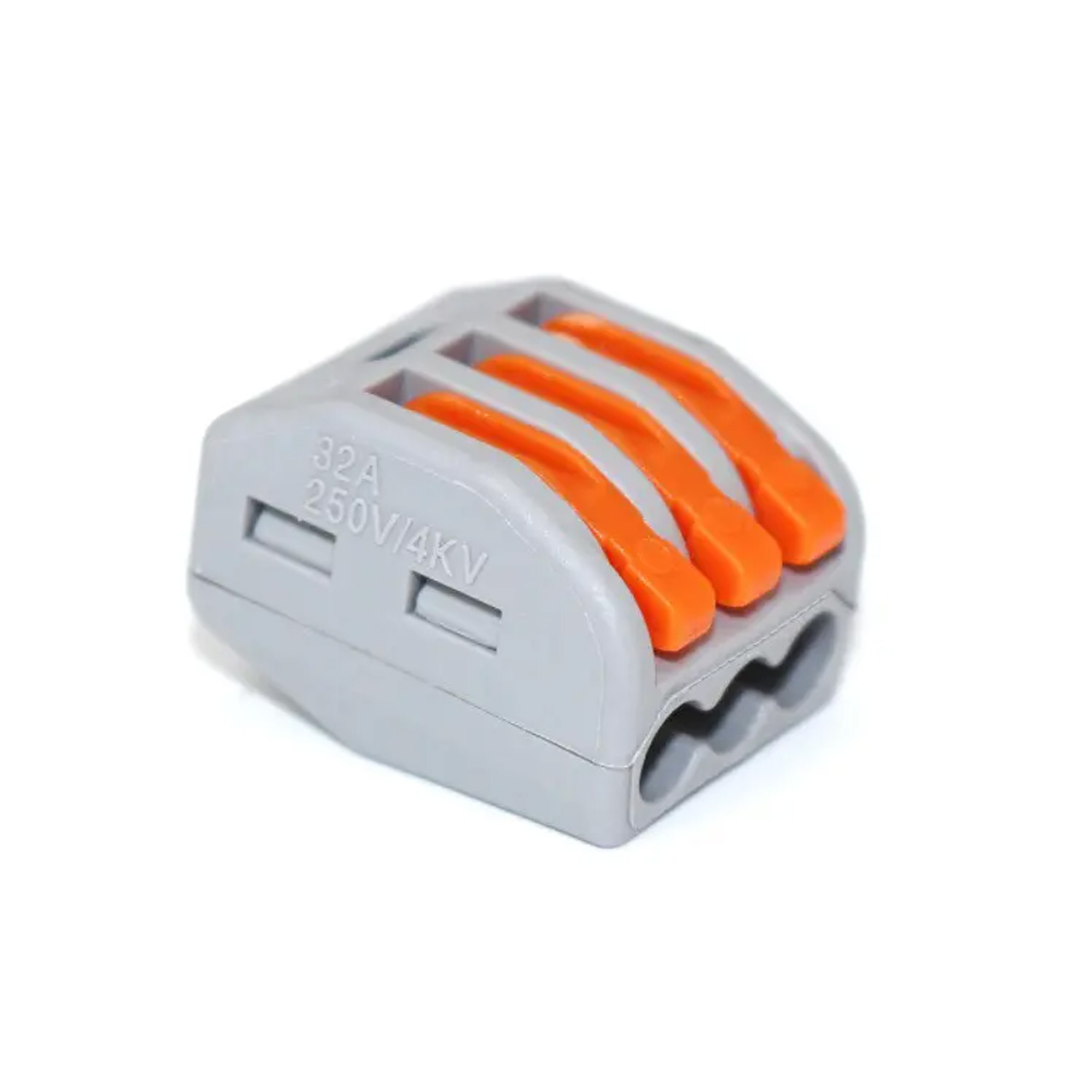Клема сполучна типу WAGO 222-413 на 3 проводи 0.08–4 мм²/12–28AWG 32А 250В важільний затискач Premium