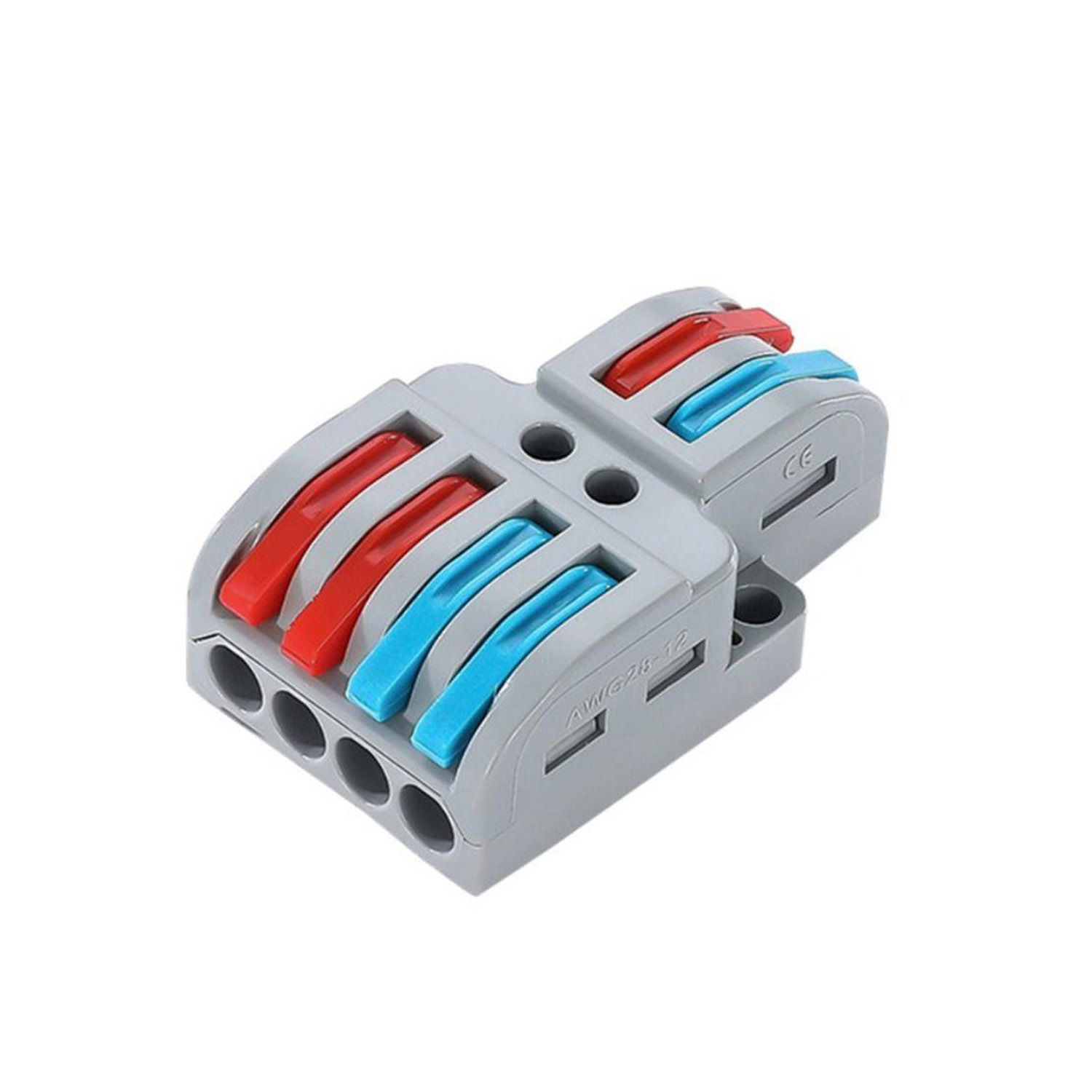 Клема розгалужувач типу WAGO 2 на 4 проводи призначена для підключення одножильних та багатожильних провідників діаметром від 0,08 мм2 до 4 мм2 (AWG28-12). Клема розгалужувальна з 2 на 4 дроти, з натискними важелями.