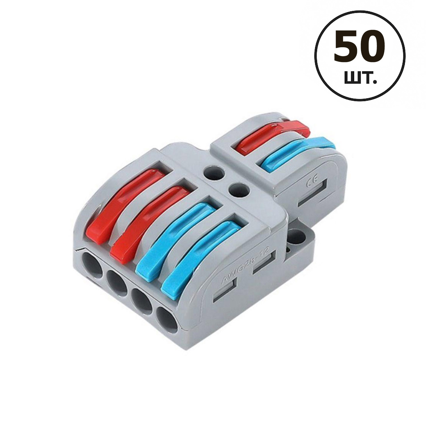 Набір 50 шт. Клем розгалужувачів M24A типу WAGO 2 на 4 проводи 0.08–4 мм²/12–28AWG 32А 250В важільний затискач Premium