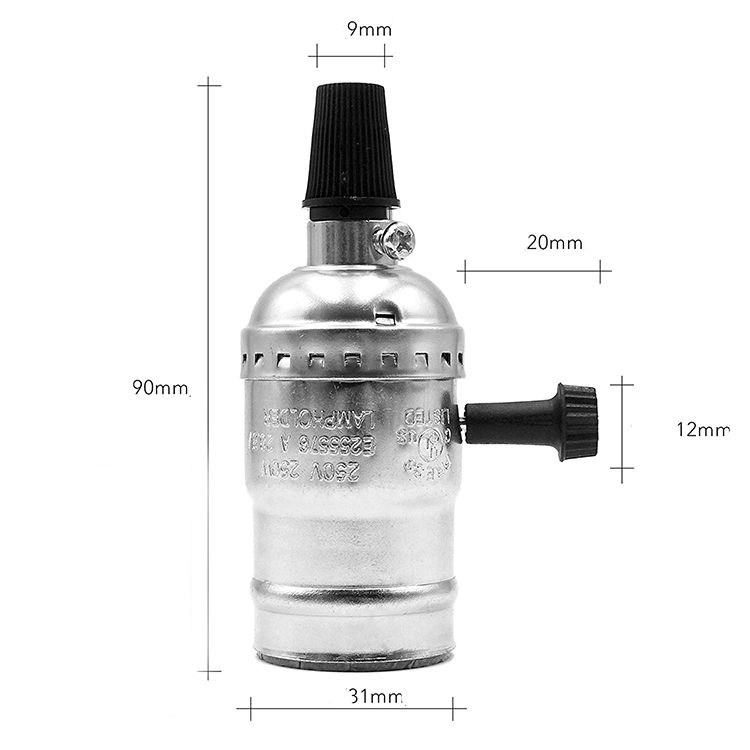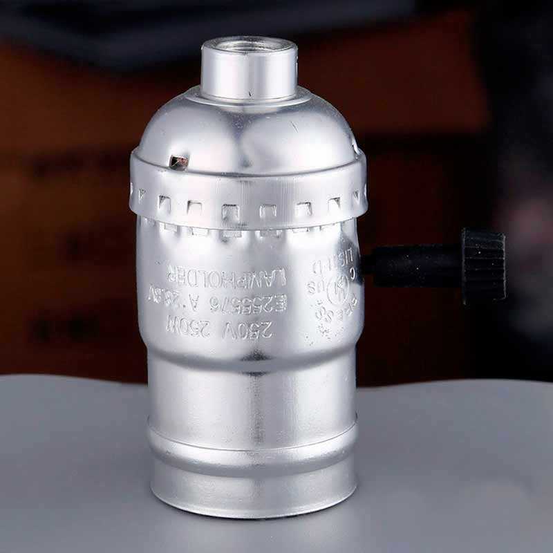 Алюмінієвий ретро-патрон Е27 хром для ламп Едісона (економ серія) з вимикачем