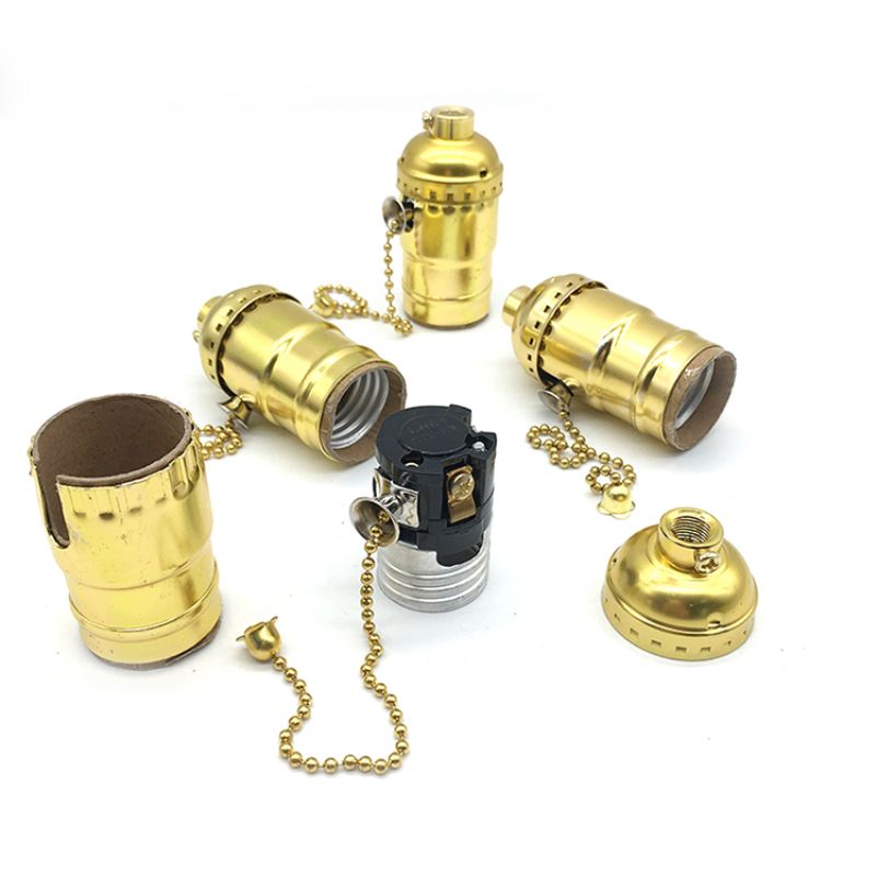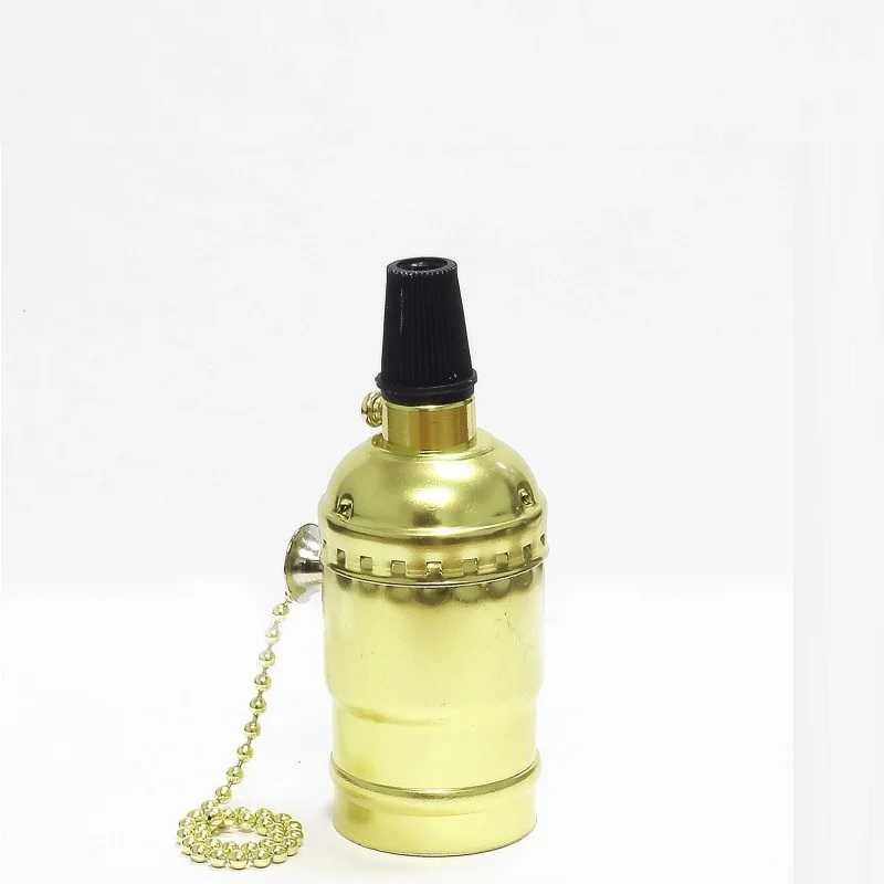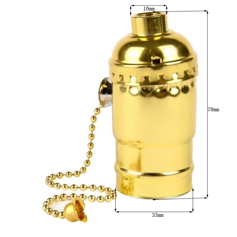 Алюмінієвий ретро-патрон Е27 в кольорі золото з вимикачем ланцюжок (економ варіант), призначений для використання у поєднанні з лампами Едісона. Низька ціна та стильний вигляд дозволять вам реалізувати ваші дизайнерські ідеї лофта з мінімальними витратами.