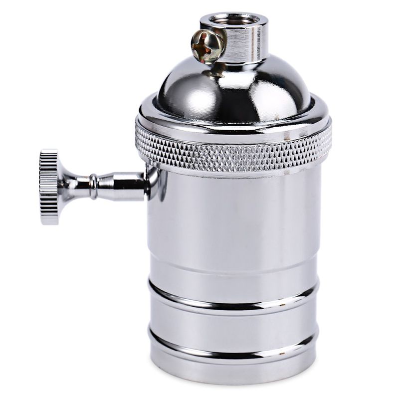 Латунний ретро патрон Е27 в кольорі хром для ламп Едісона з вимикачем. Цей патрон особливо добре поєднується з "вінтажним" або "ретро" стилем в інтер'єрі.