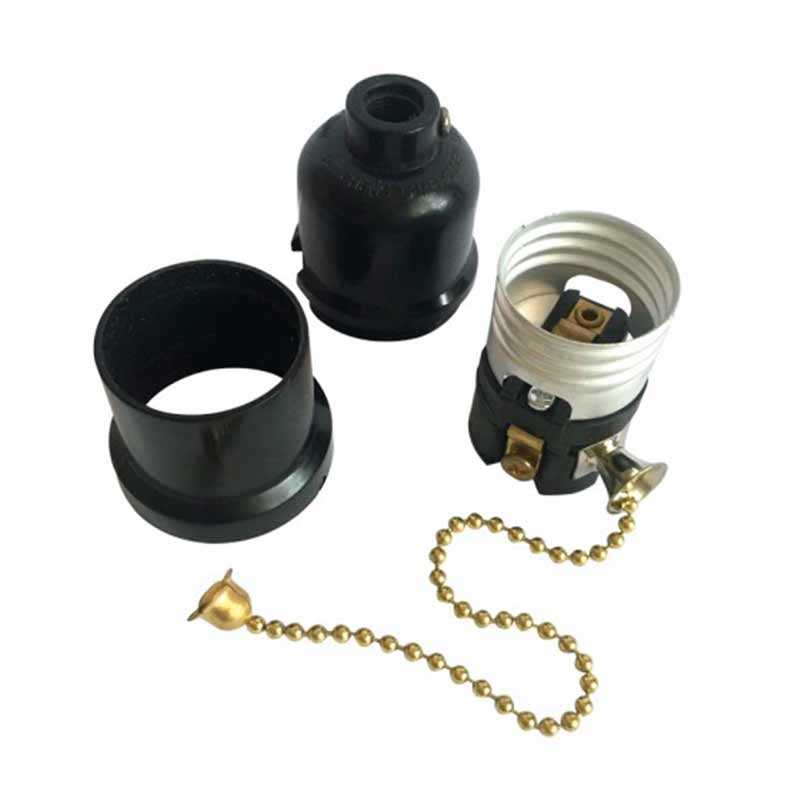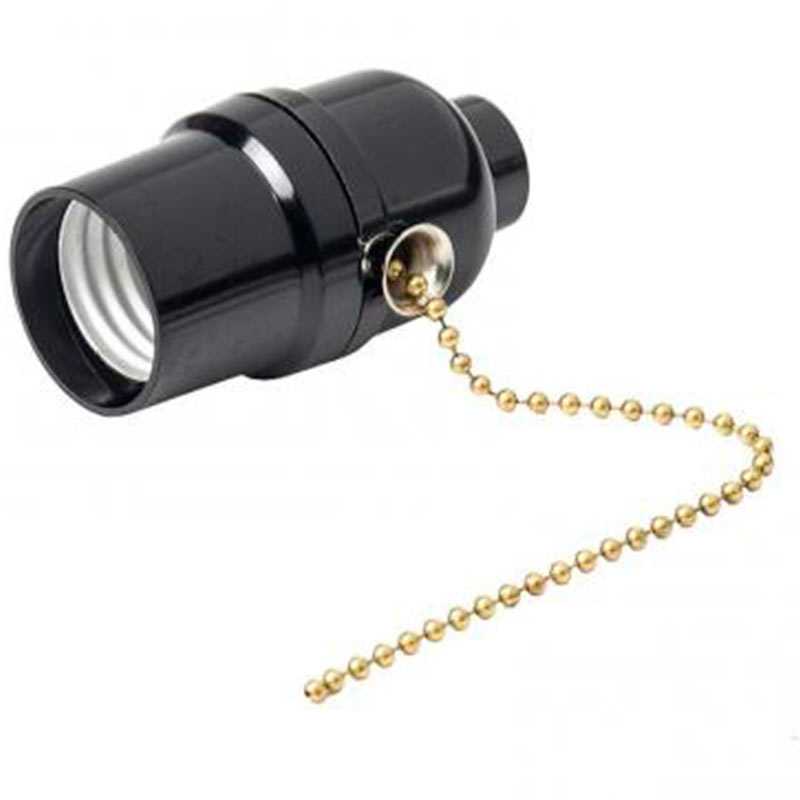Патрон карболітовий Е27 для абажурів з вимикачем ланцюжок. Універсальний карболітовий патрон Е27. Економ варіант для використання з абажурами в стилі лофт, а також допоможе реалізувати будь-які ваші ідеї завдяки наявності широкого асортименту іншої фурнітури на нашому сайті.