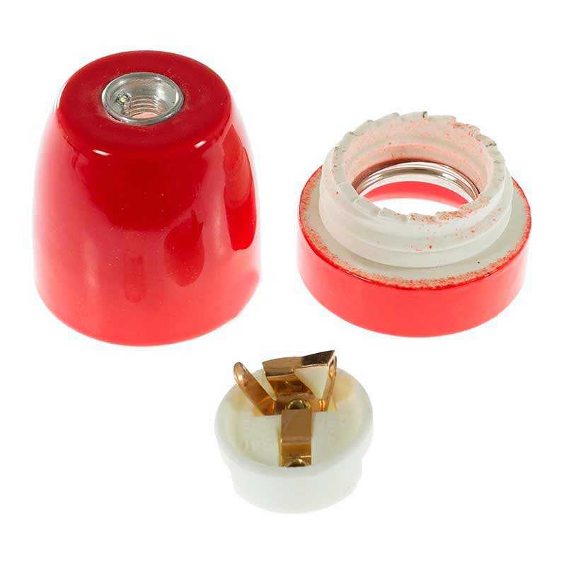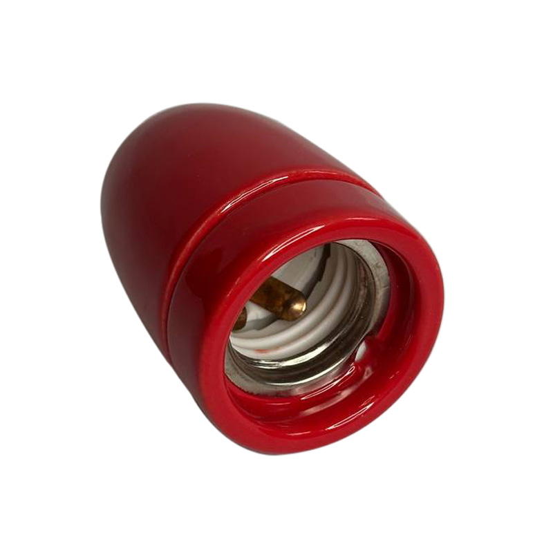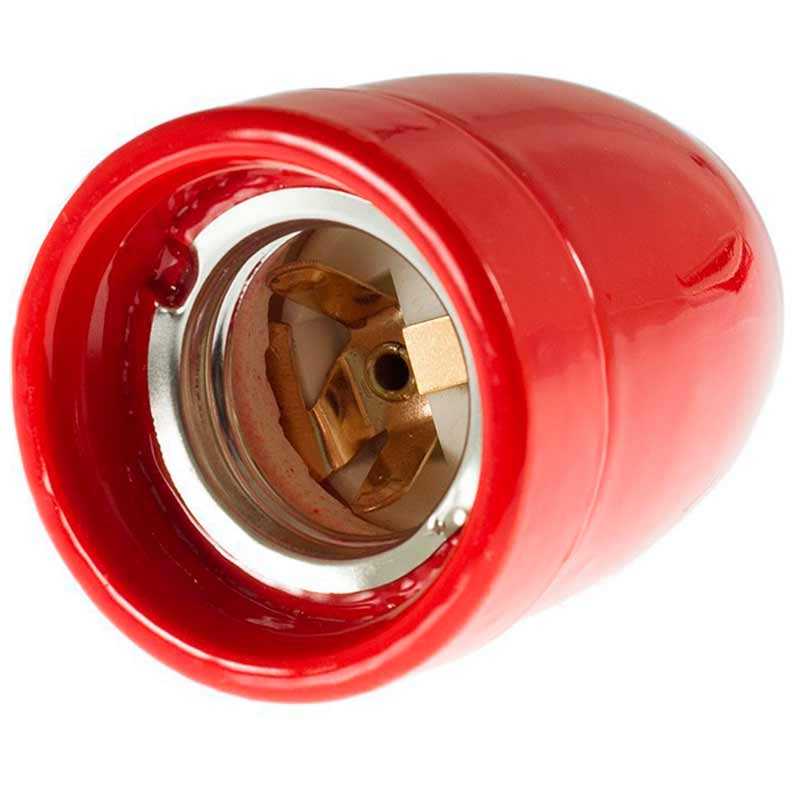 Патрон керамічний Е27 червоний із втулкою фіксатором дроту
