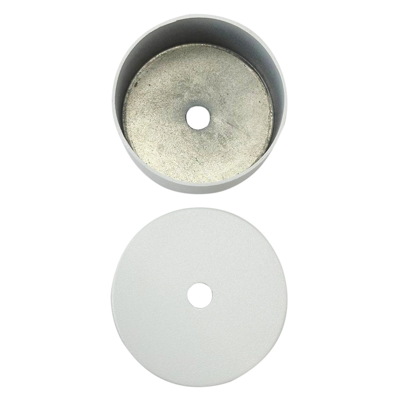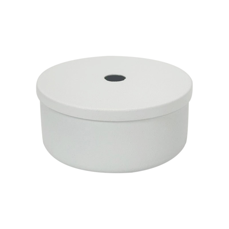 Корпус металевий діаметром 70 мм та висотою 30 мм з кришкою діаметром 72 мм та висотою 5 білого кольору.