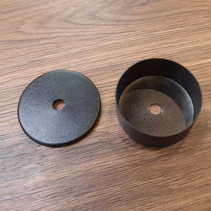 Корпус металевий діаметром 70 мм, висотою 30 мм із кришкою діаметром 72 мм, висотою 5 мм. Діаметр отвору 10 мм.