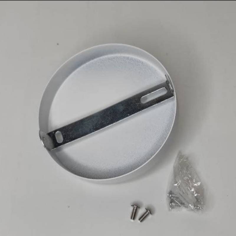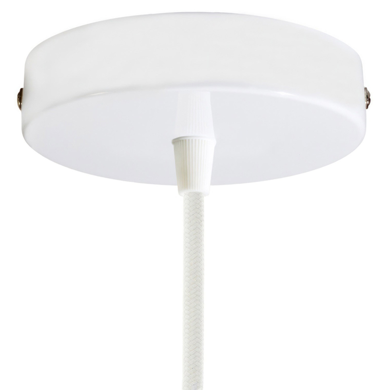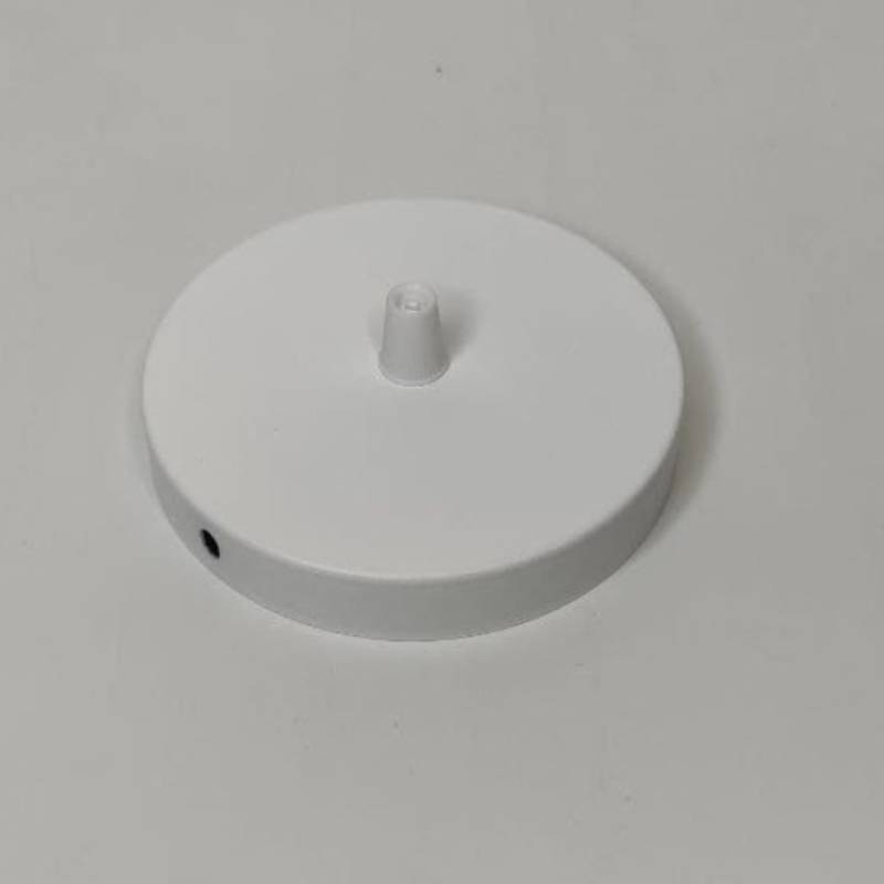 Розетка стельова біла діаметром 120мм зі стельовим кріпленням і фіксатором проводу.