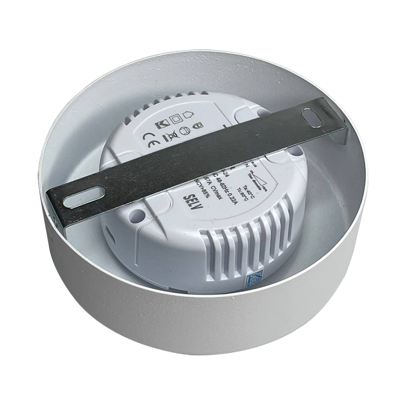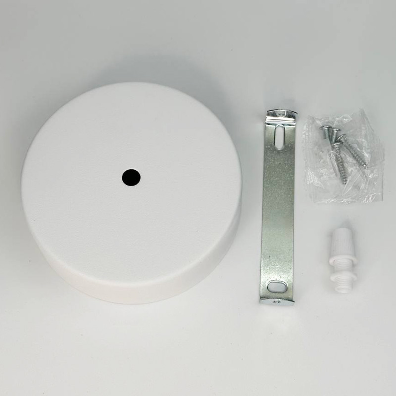 Розетка стельова біла під драйвер діаметром 120 мм, висотою 40 мм зі стельовим кріпленням та фіксатором дроту.