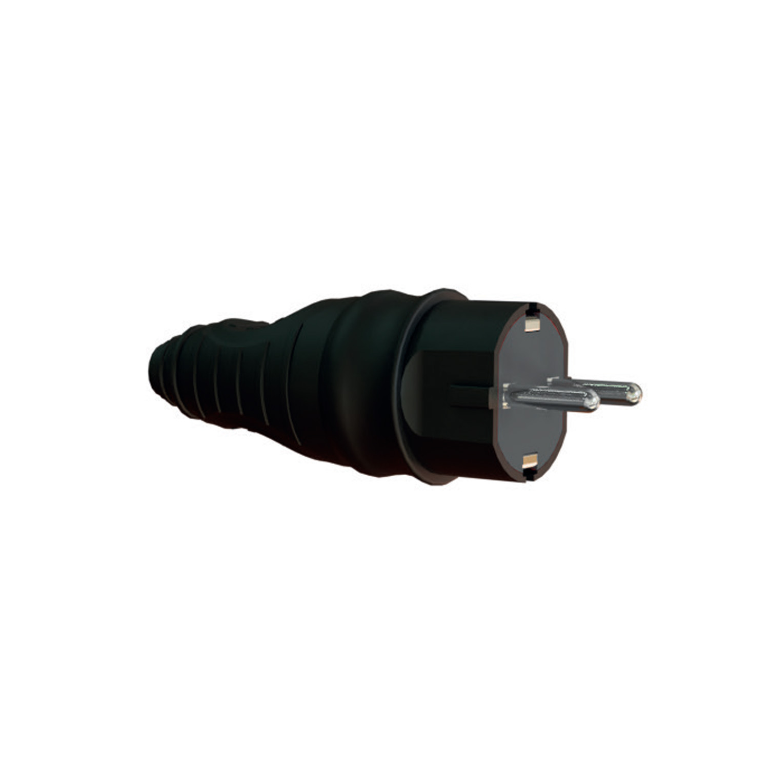 Вилка пряма із заземленням штепсельна каучук 16А чорна