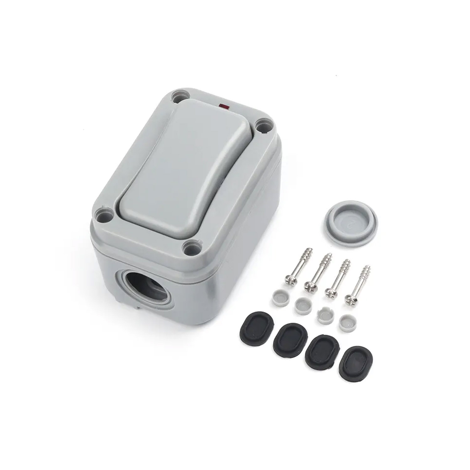 Вимикач одноклавішний відкритий IP66 водонепроникний сірий Premium