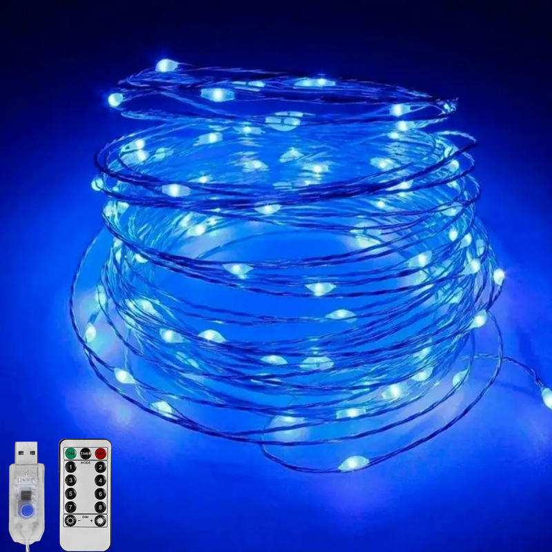 LED гірлянда новорічна Крапля роси 100LED 10м колір Синій 8 режимів з димуванням від USB з пультом ДУ