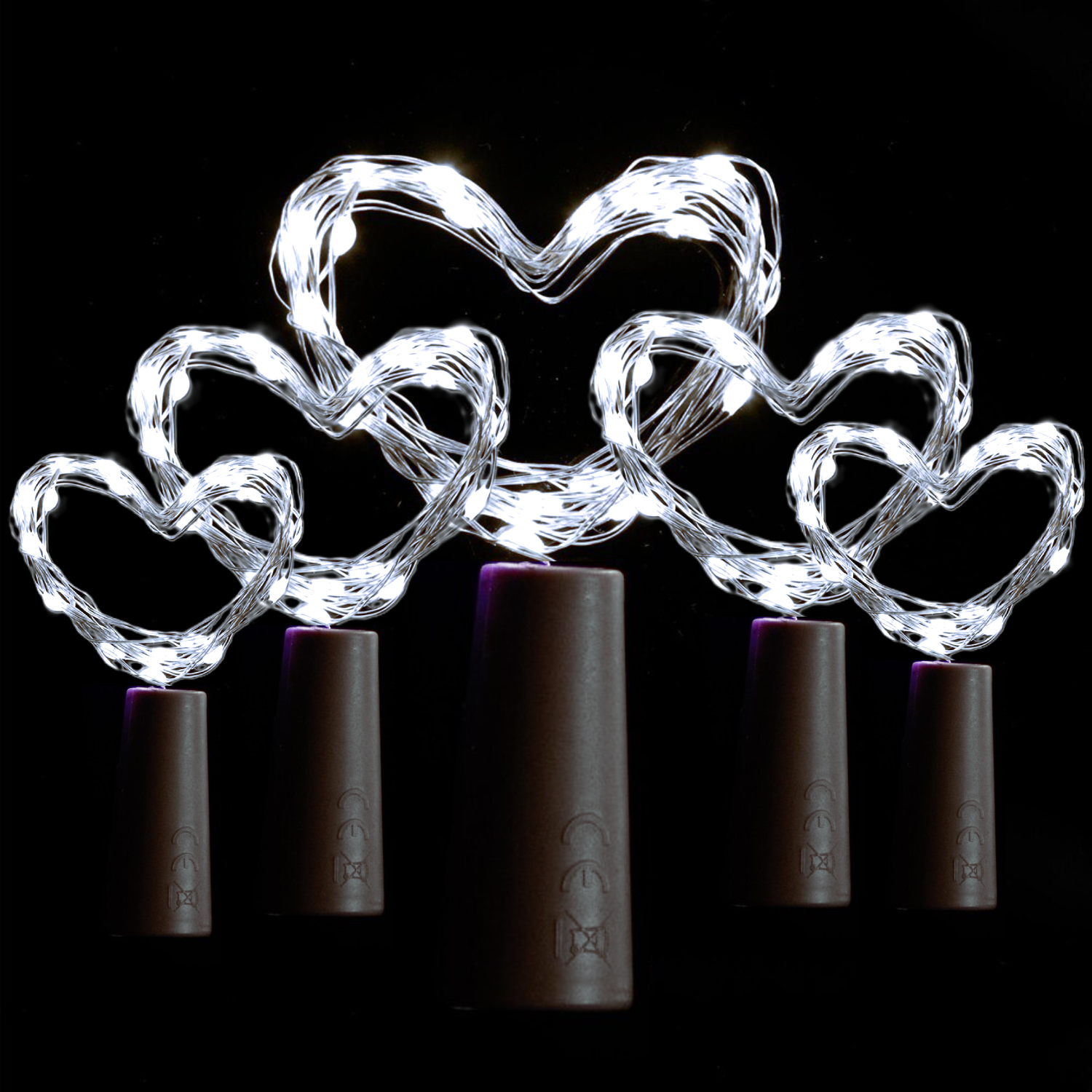 Набір з 5 LED гірлянд Пробка покращена модель на батарейці AAA з 20 LED діодами довжиною 2м холодного білого кольору без мерехтіння.