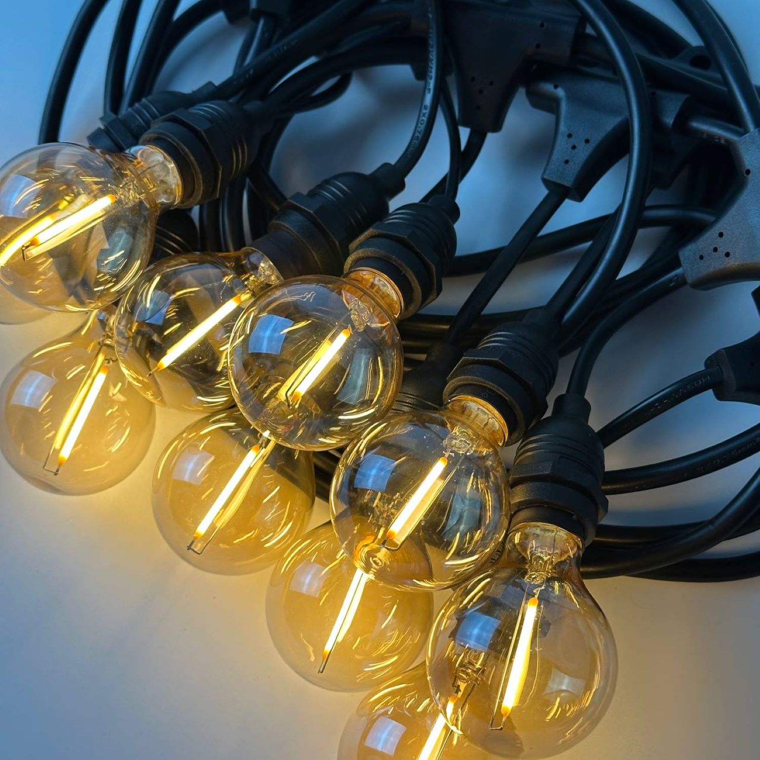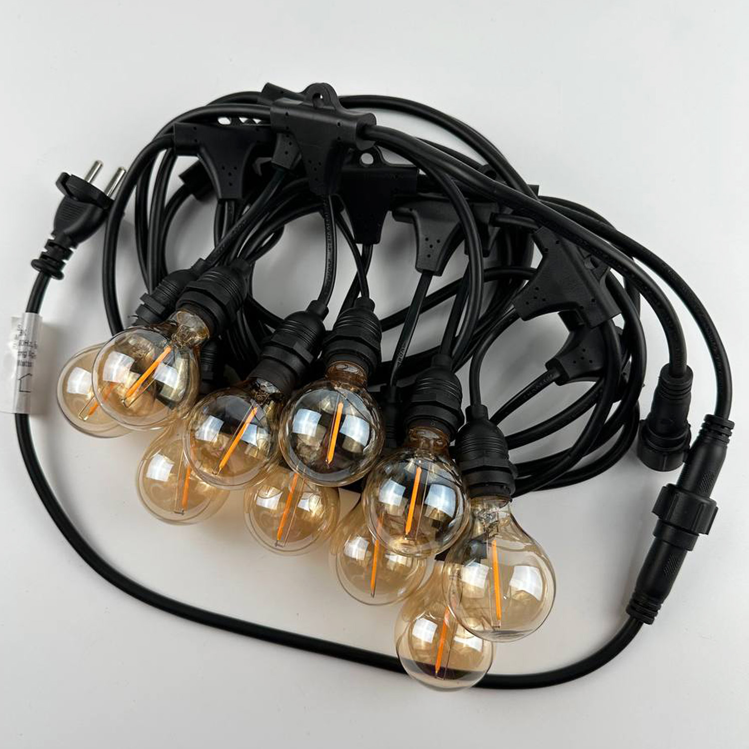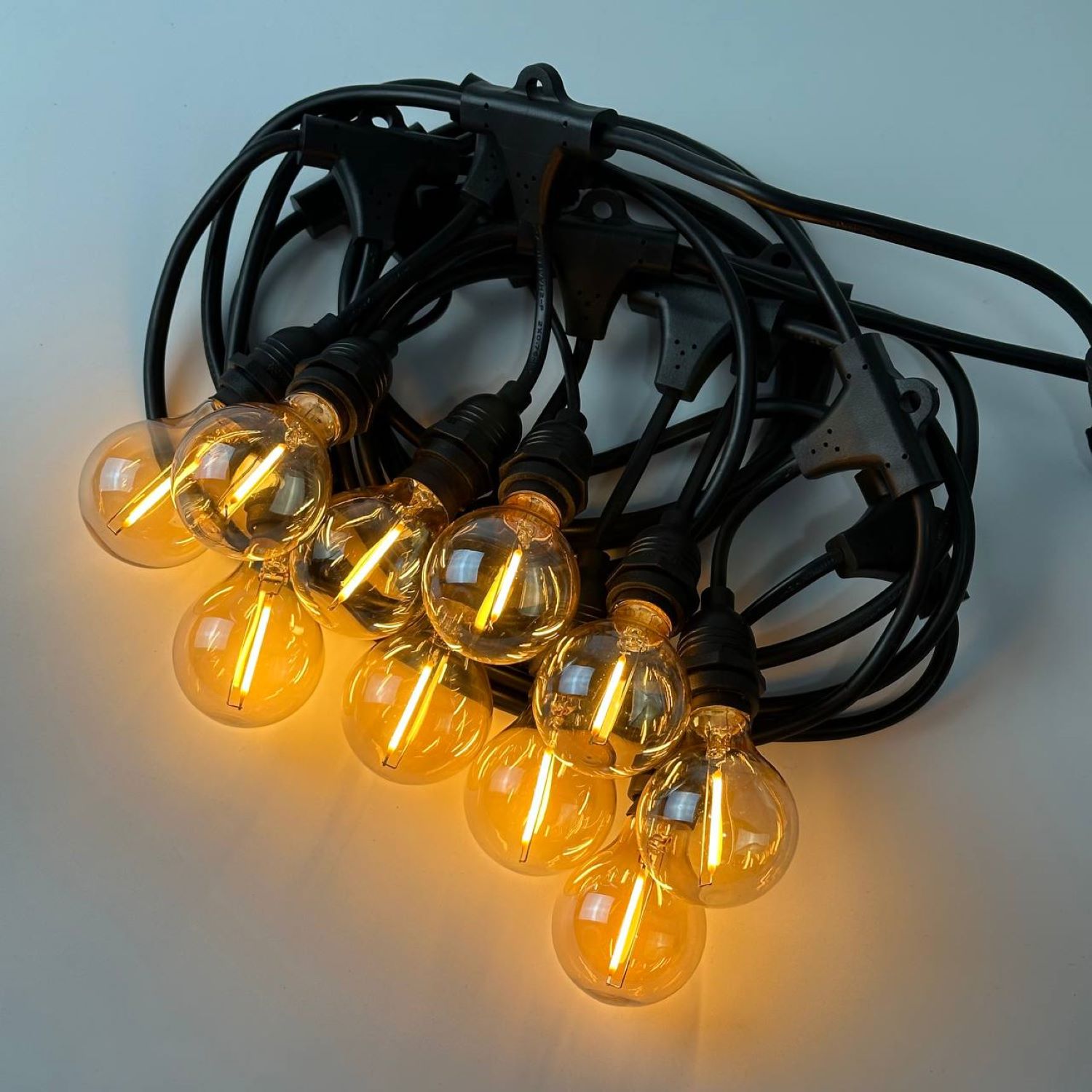 Гірлянда Едісона під цоколь Е14 PREMIUM на 10 LED лампочок G45 1W 2200K +2 запасні у комплекті.