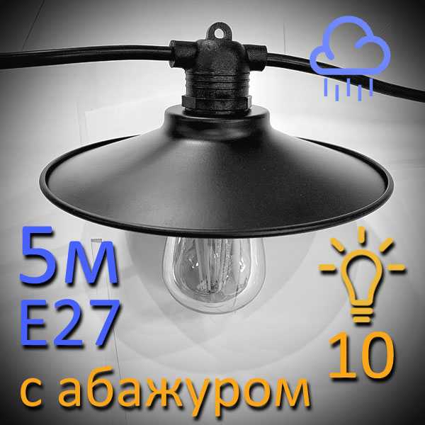 Вулична ретро гірлянда Е27 з абажурами (5м 10 патронів) IP65 М19 вологозахищена Premium