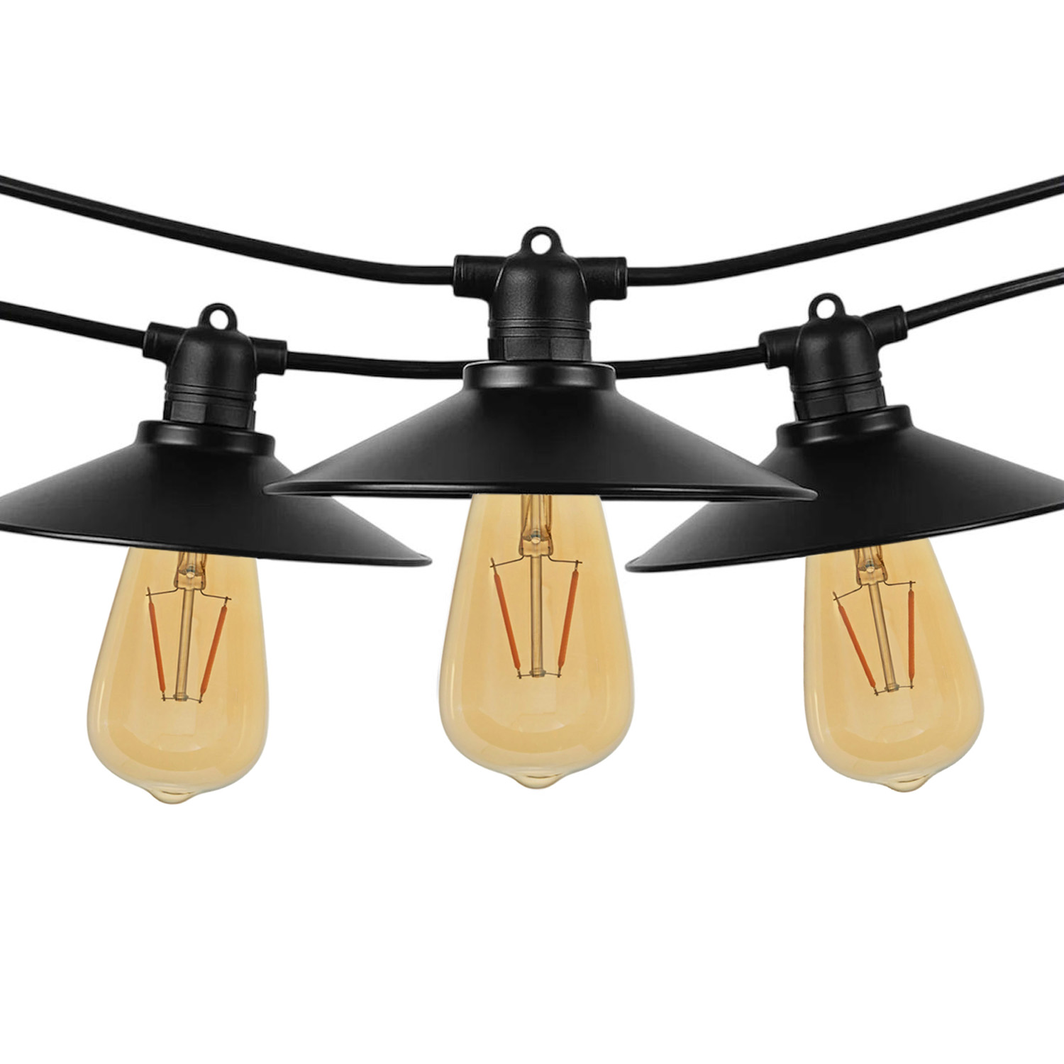 Вулична ретро гірлянда З АБАЖУРАМИ з лампочок під цоколь Е27 PREMIUM (5 метрів) IP65 вологозахищена