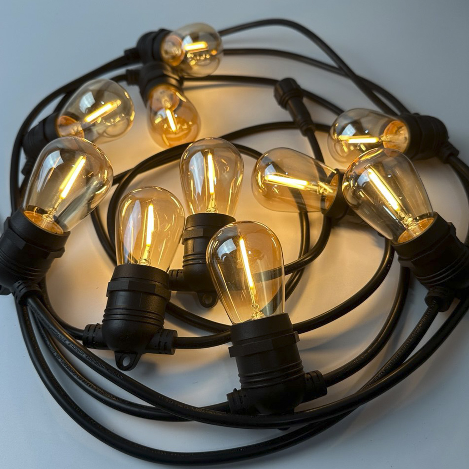 Вулична ретро гірлянда з лампочок під цоколь Е27 PREMIUM (15 метрів+0,5 метрів кабель живлення, який можна придбати окремо) IP65 вологозахищена.