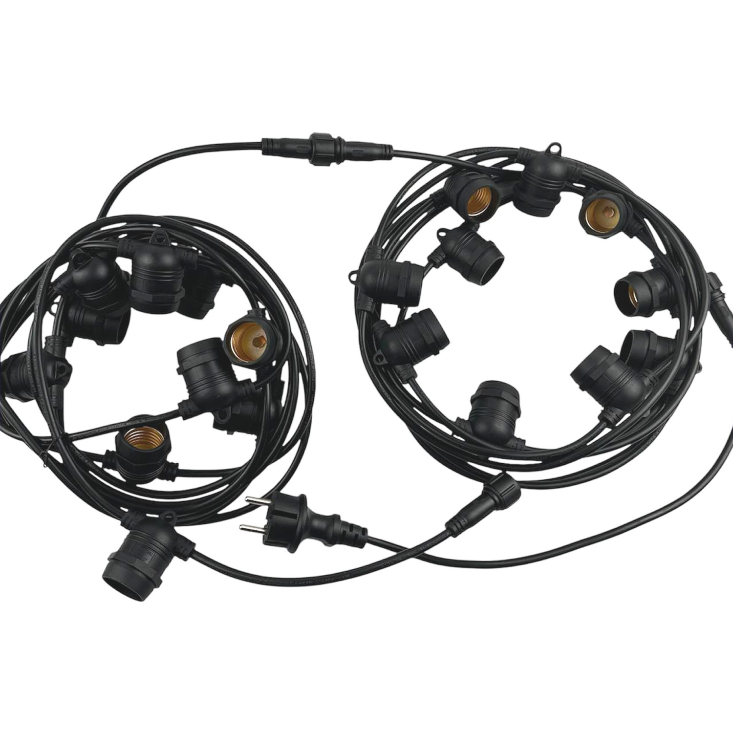 Вулична ретро гірлянда Стрінг Лайт Е27 (15м 30 патронів) M19 IP65 вологозахищена переріз проводу 2х0,5 Premium, Кабель живлення: Додати кабель живлення Чорний 1шт.
