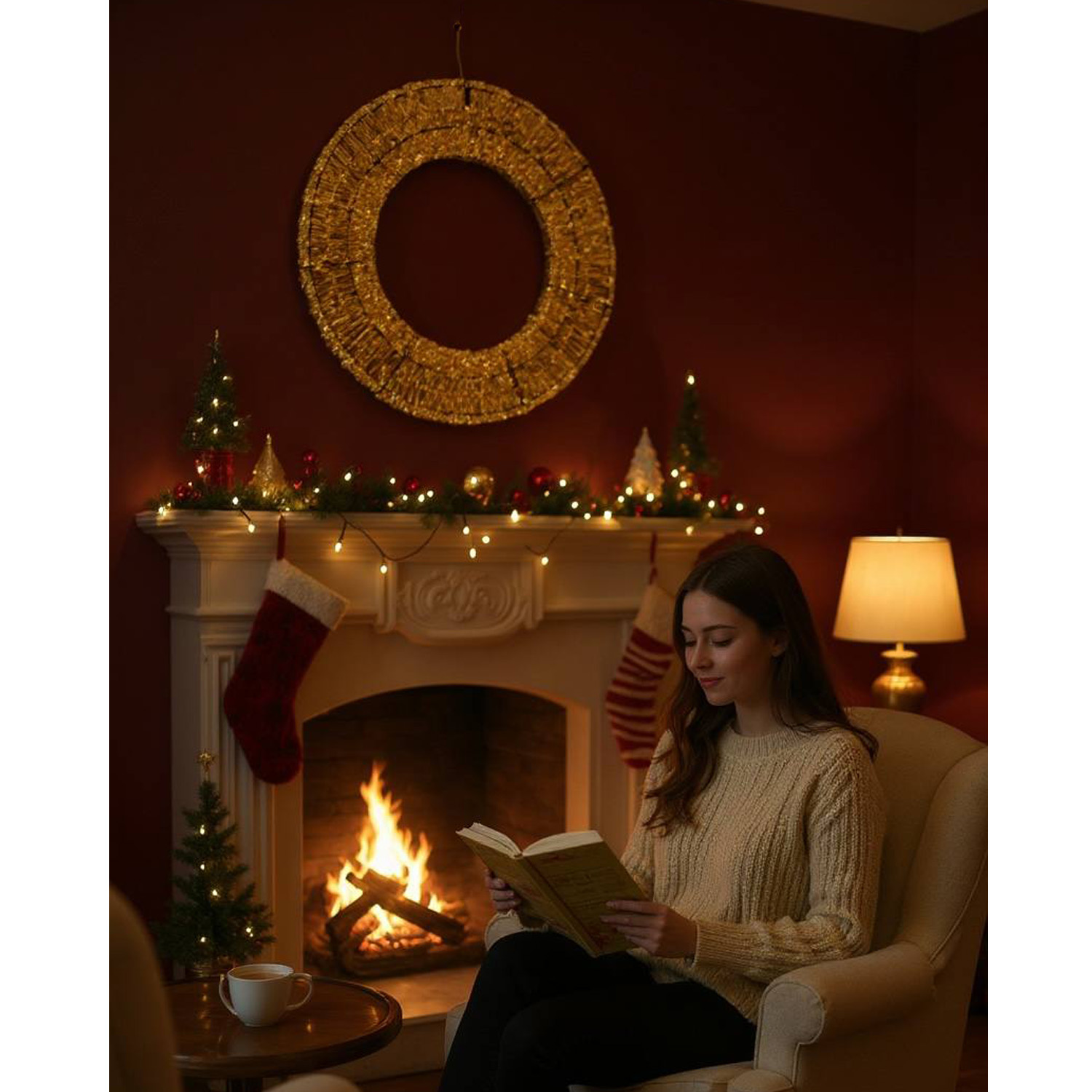 Світлодіодний новорічний вінок 110 см 8000LED - яскравий акцент для вікна, стіни, вітрини або святкової фотозони. Щільне намотування створює рівномірне сяйво. За металевий каркас зручно підвішувати та знімати вінок. Енергоощадні світлодіоди практично не нагріваються, безпечні для тривалого використання в інтер’єрі.