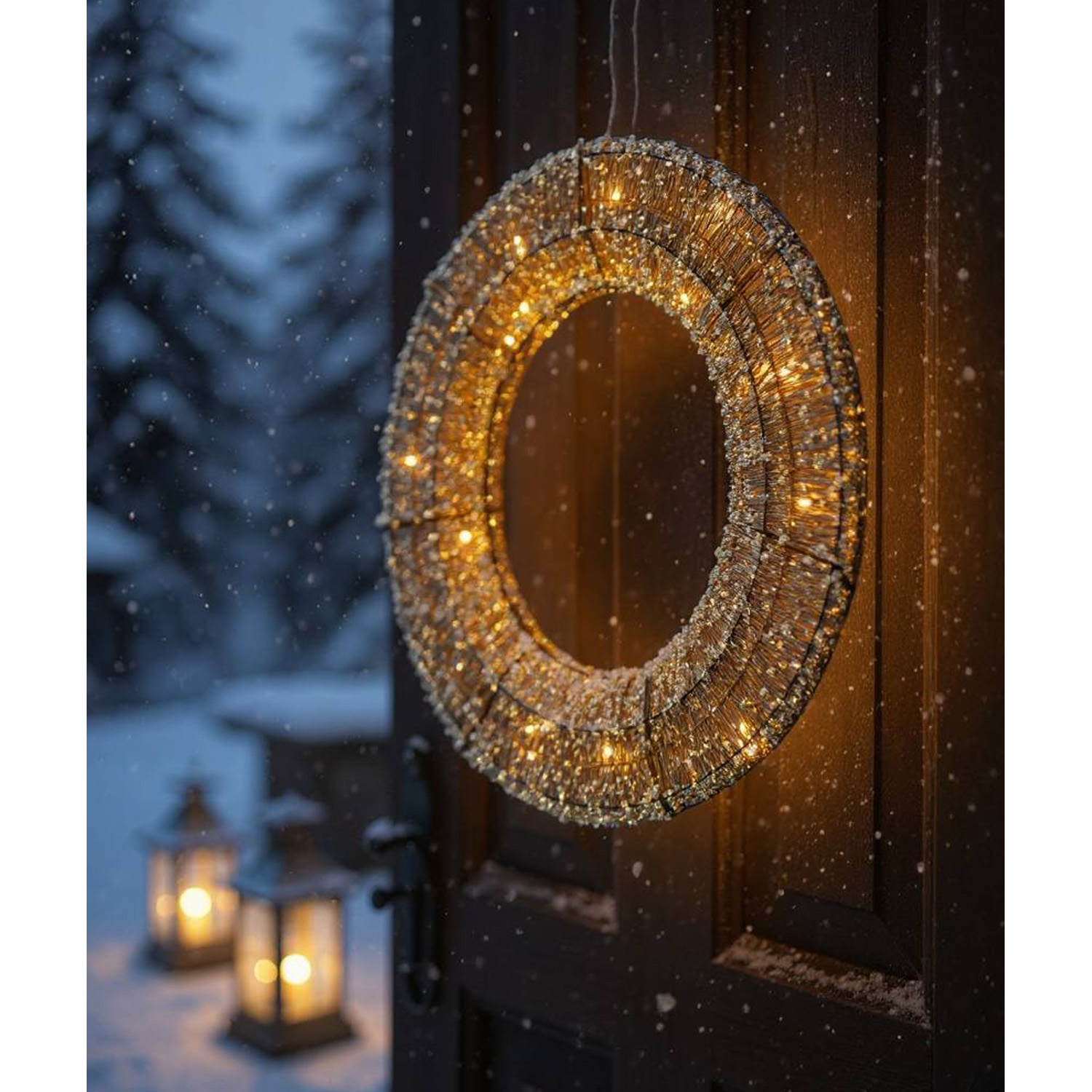Світлодіодний новорічний вінок 75 см 4000LED - яскравий акцент для вікна, стіни, вітрини або святкової фотозони. Щільне намотування створює рівномірне сяйво. За металевий каркас зручно підвішувати та знімати вінок. Енергоощадні світлодіоди практично не нагріваються, безпечні для тривалого використання в інтер’єрі.