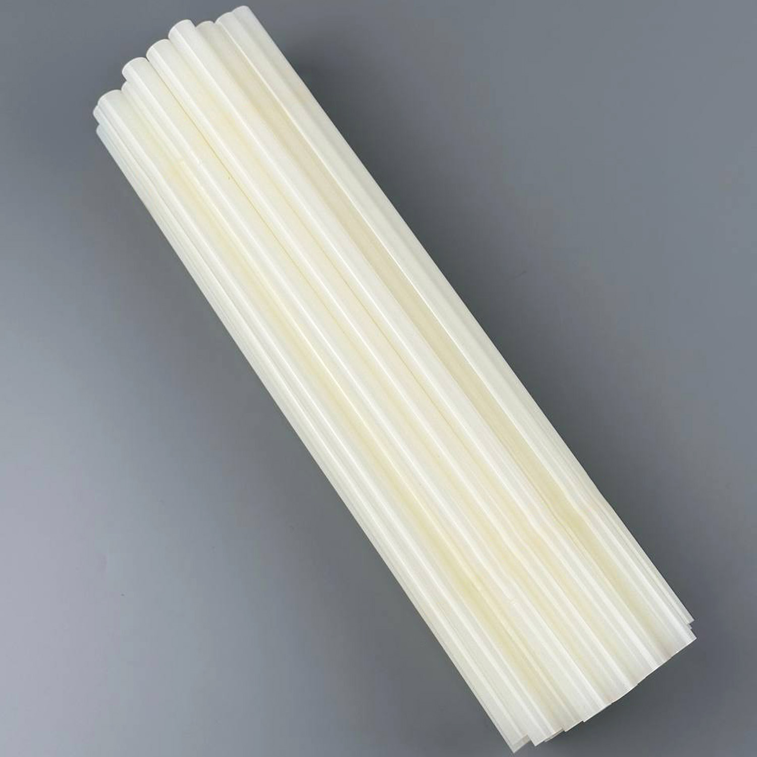 Термоплавкий клей у стрижні білого прозорого кольору 1 кг (33 шт.), що володіє високою адгезією до різних матеріалів, високою в'язкістю, підвищеною стійкістю до ультрафіолетового випромінювання, впливу вологи, перепадів температур і з низькою токсичністю.