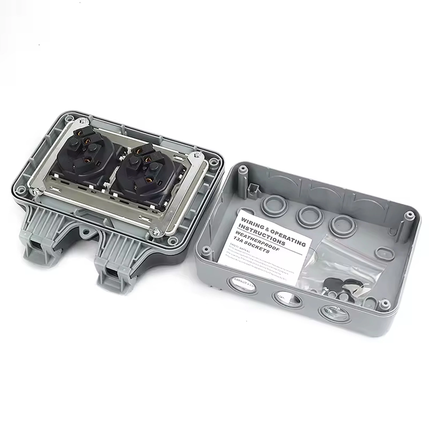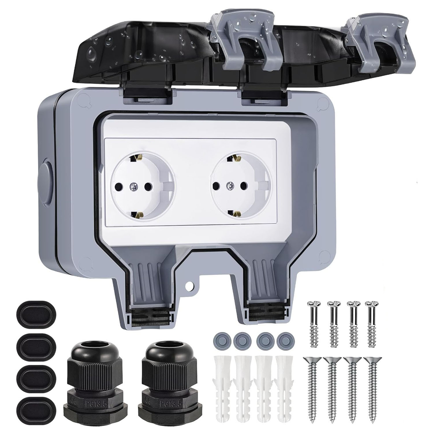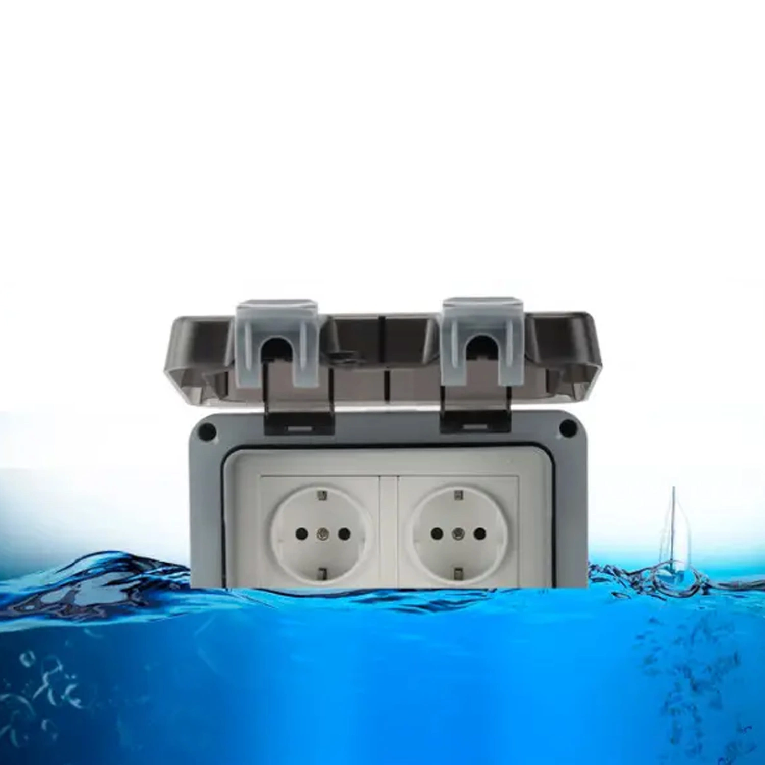 Розетка подвійна IP66 водонепроникна сіра Premium