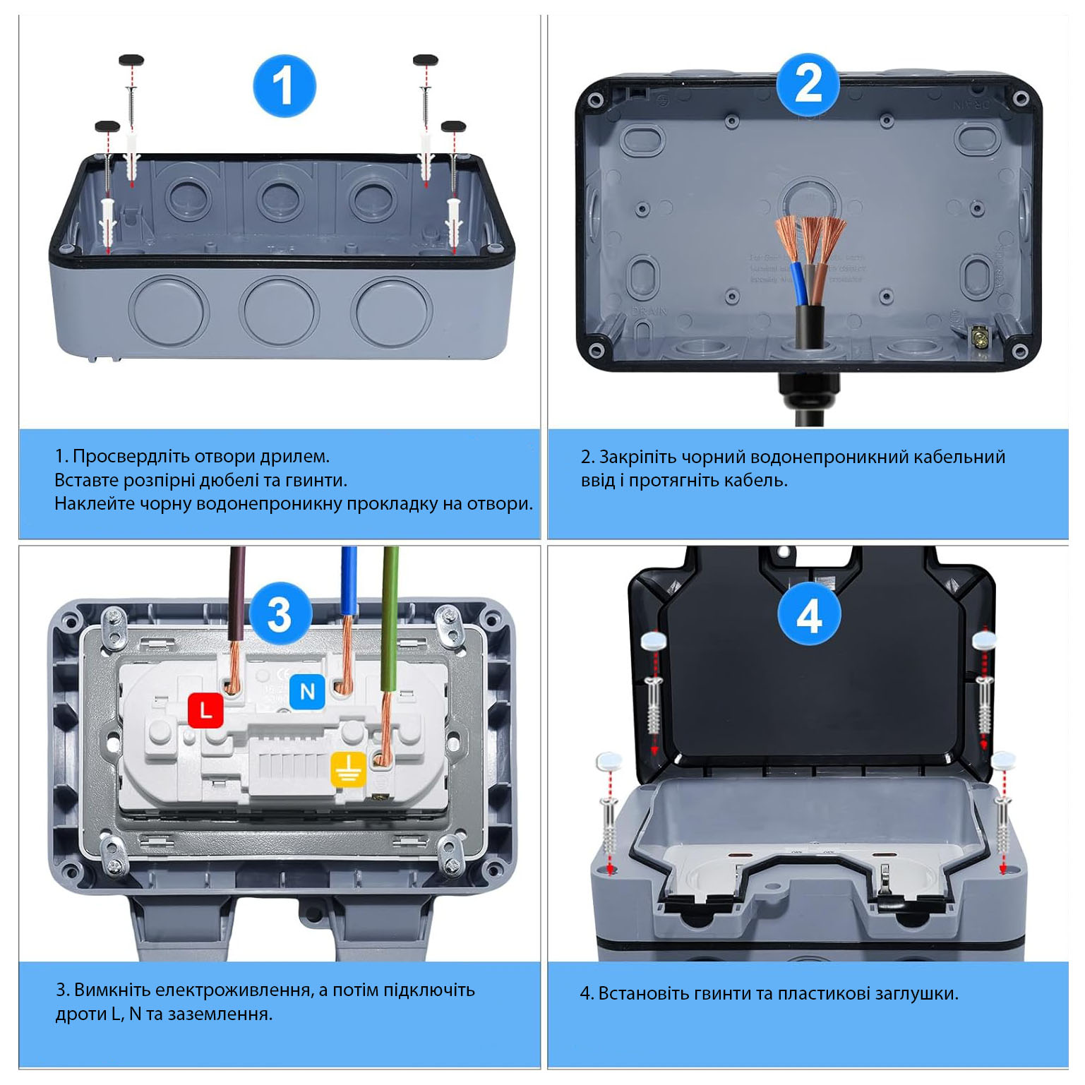 - Удароміцний корпус та кришка витримують високі експлуатаційні навантаження за різних умов установки завдяки литтю пластику ABS під високим тиском.