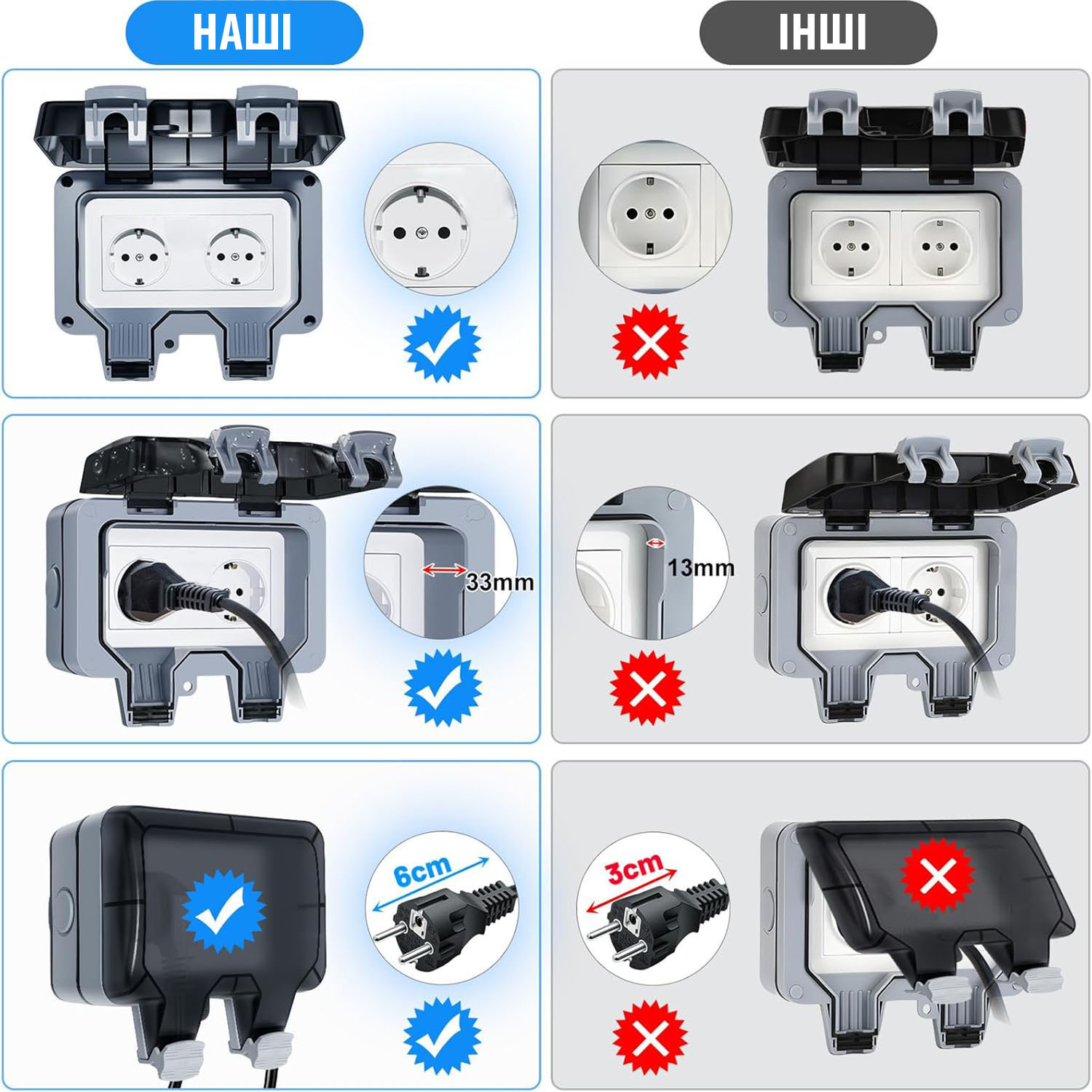 - Зручність та безпека. Забезпечує захист електропристроїв від негоди. Безпека використання навіть під час дощу (електровилка під напругою герметично закривається кришкою). Стійкість до високих та низьких температур.