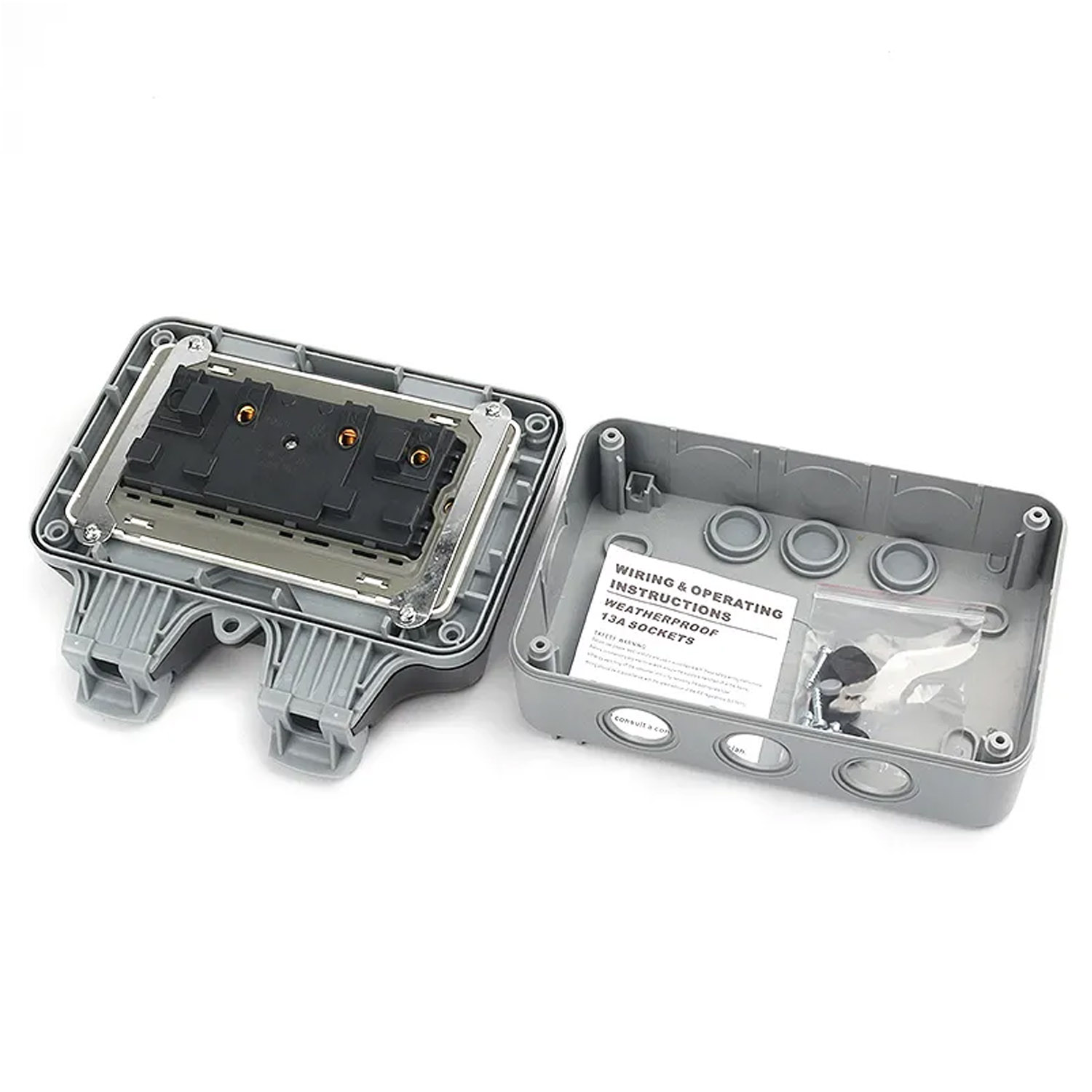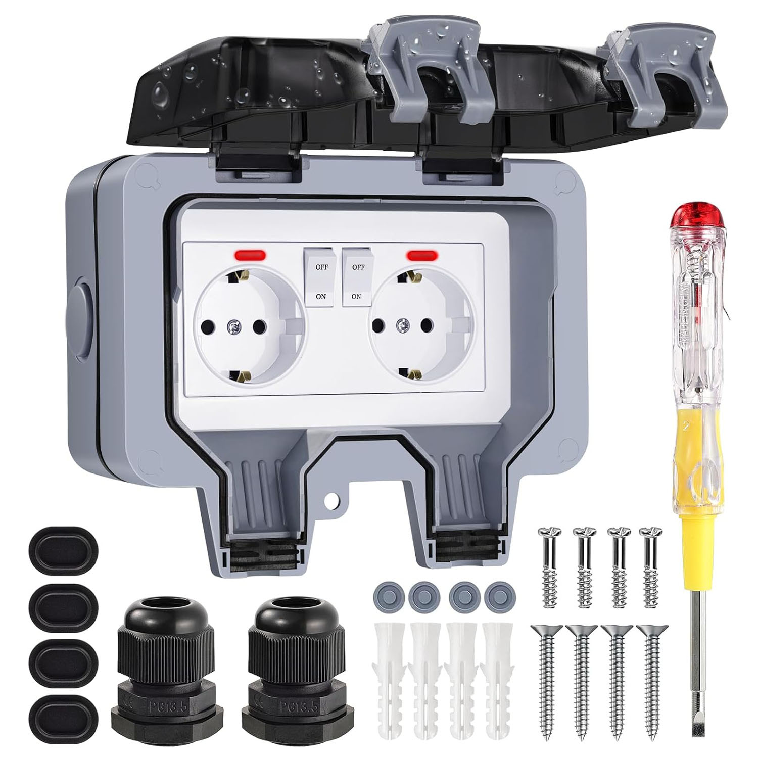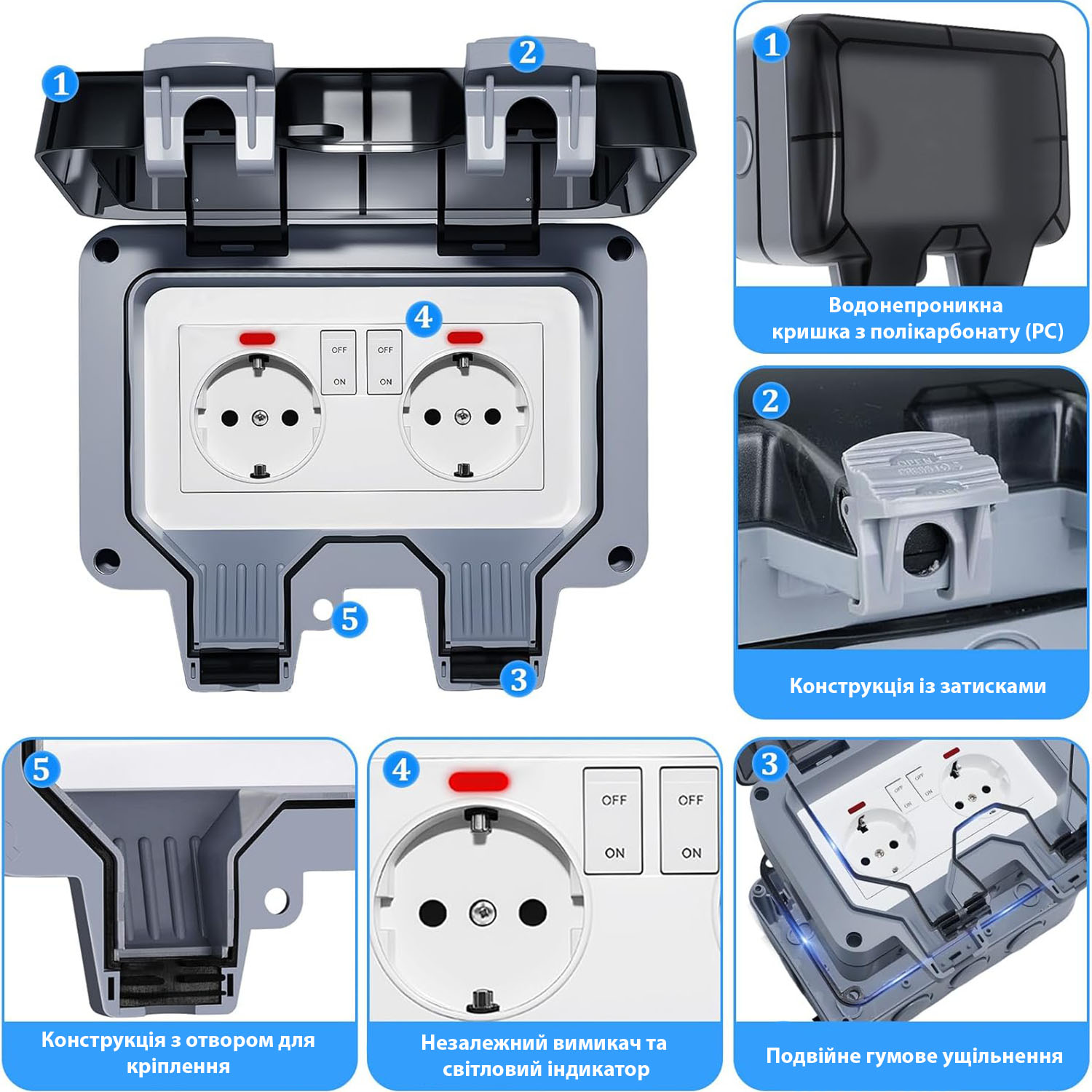Розетка подвійна (з вимикачем всередині) IP66 водонепроникна сіра Premium