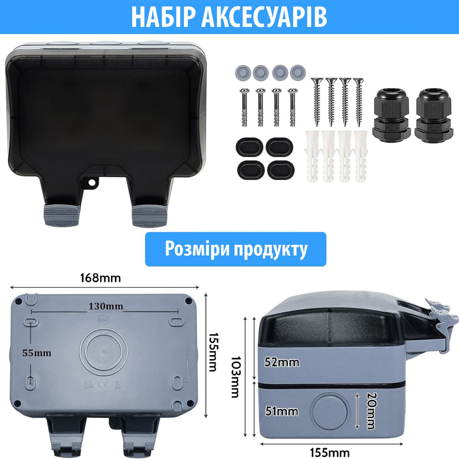 - Удароміцний корпус та кришка витримують високі експлуатаційні навантаження за різних умов установки завдяки литтю пластику ABS під високим тиском.