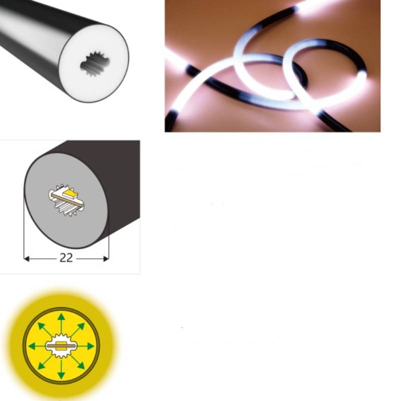 Для даної силіконової трубки діаметром 22 мм необхідно використовувати стрічку LED шириною 8 мм.