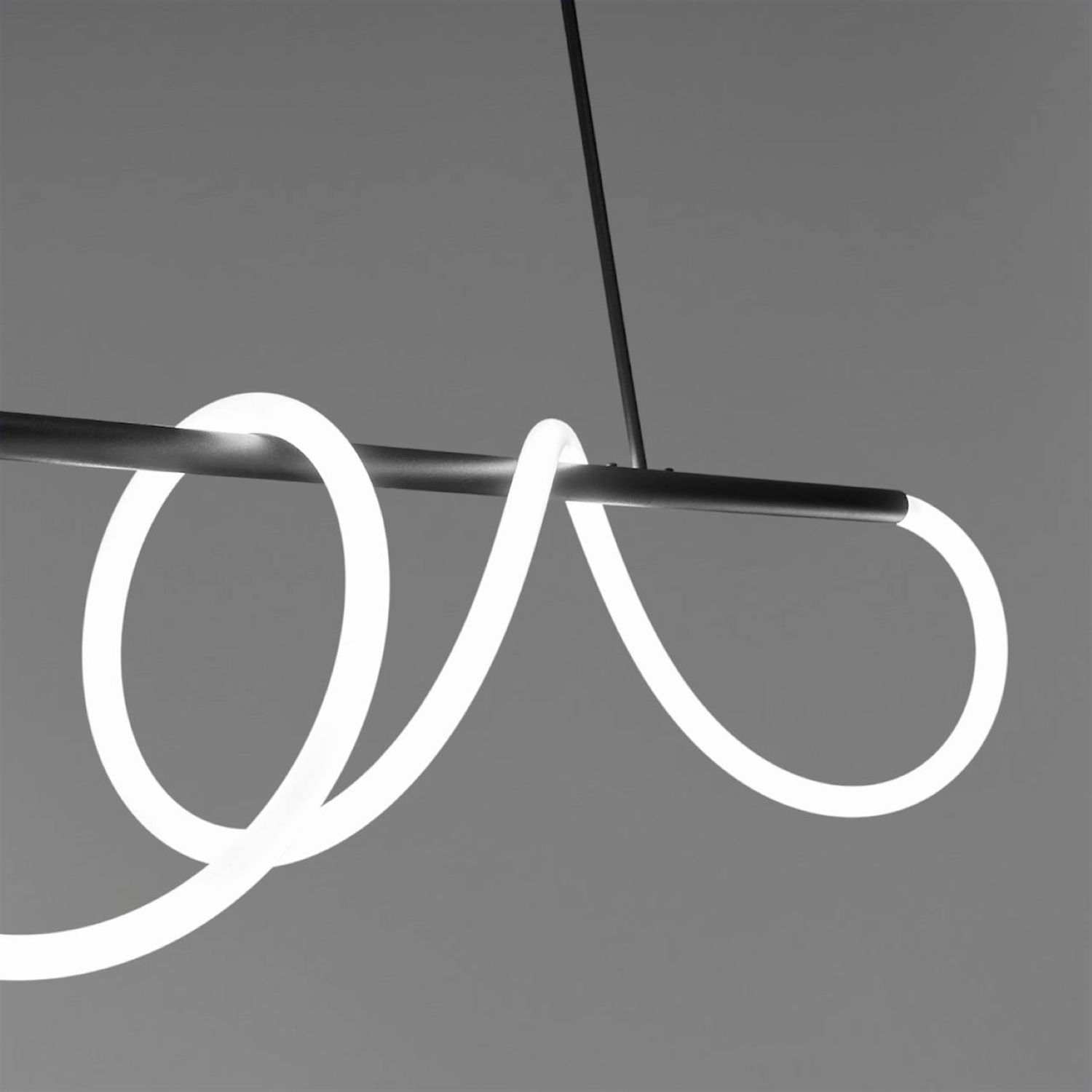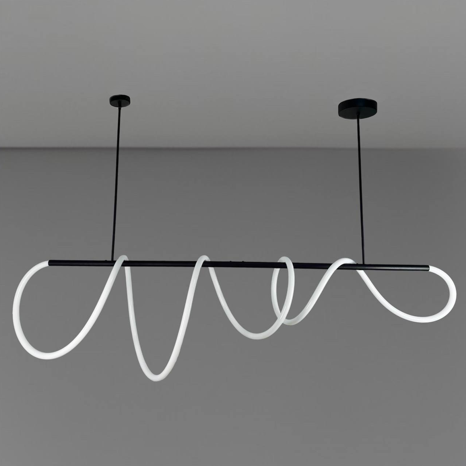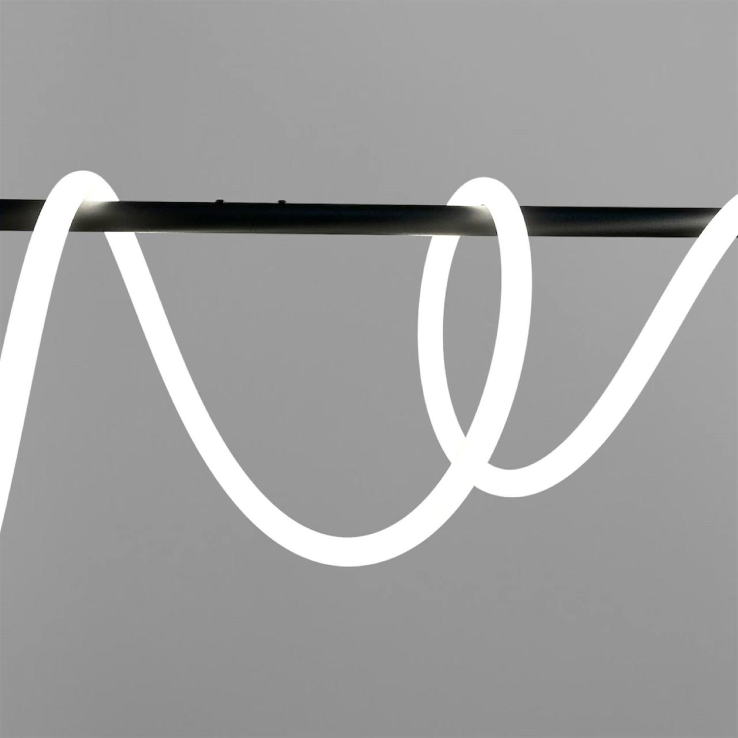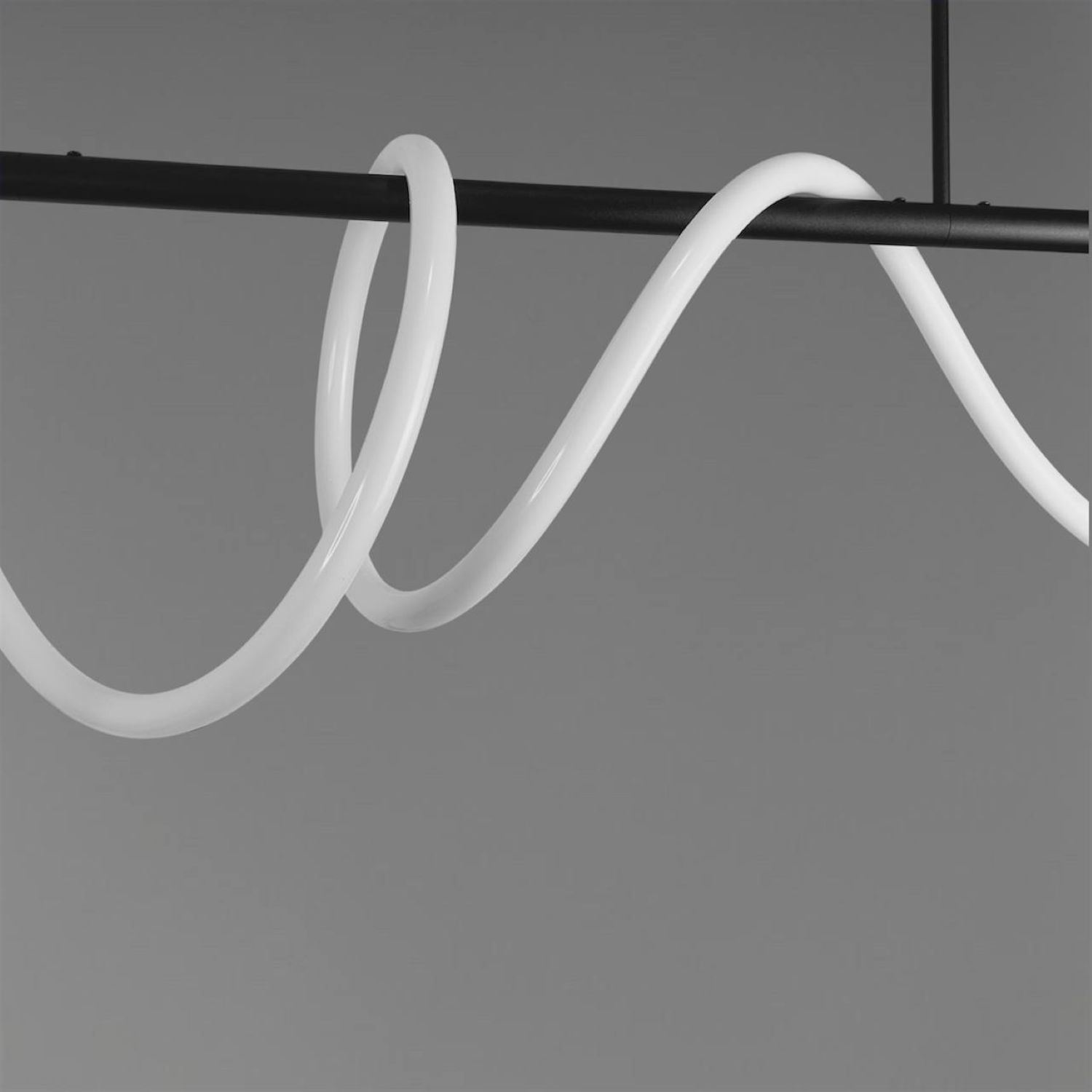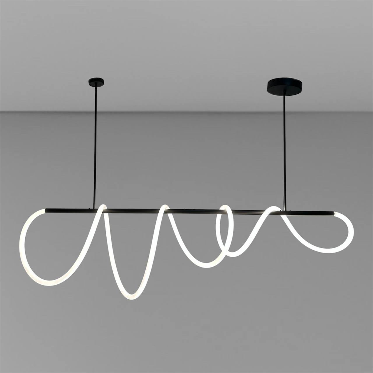 Оригінальна люстра Nordik W являє собою горизонтальний металевий стрижень, вільно обвитий LED неоном білого матового кольору 24 мм, всередині якого проходить світлодіодна стрічка. В результаті заломлення світла у включеному стані виходить яскрава неонова дуга, що рівномірно світиться, яка додасть Вашому інтер'єру сучасних фарб.