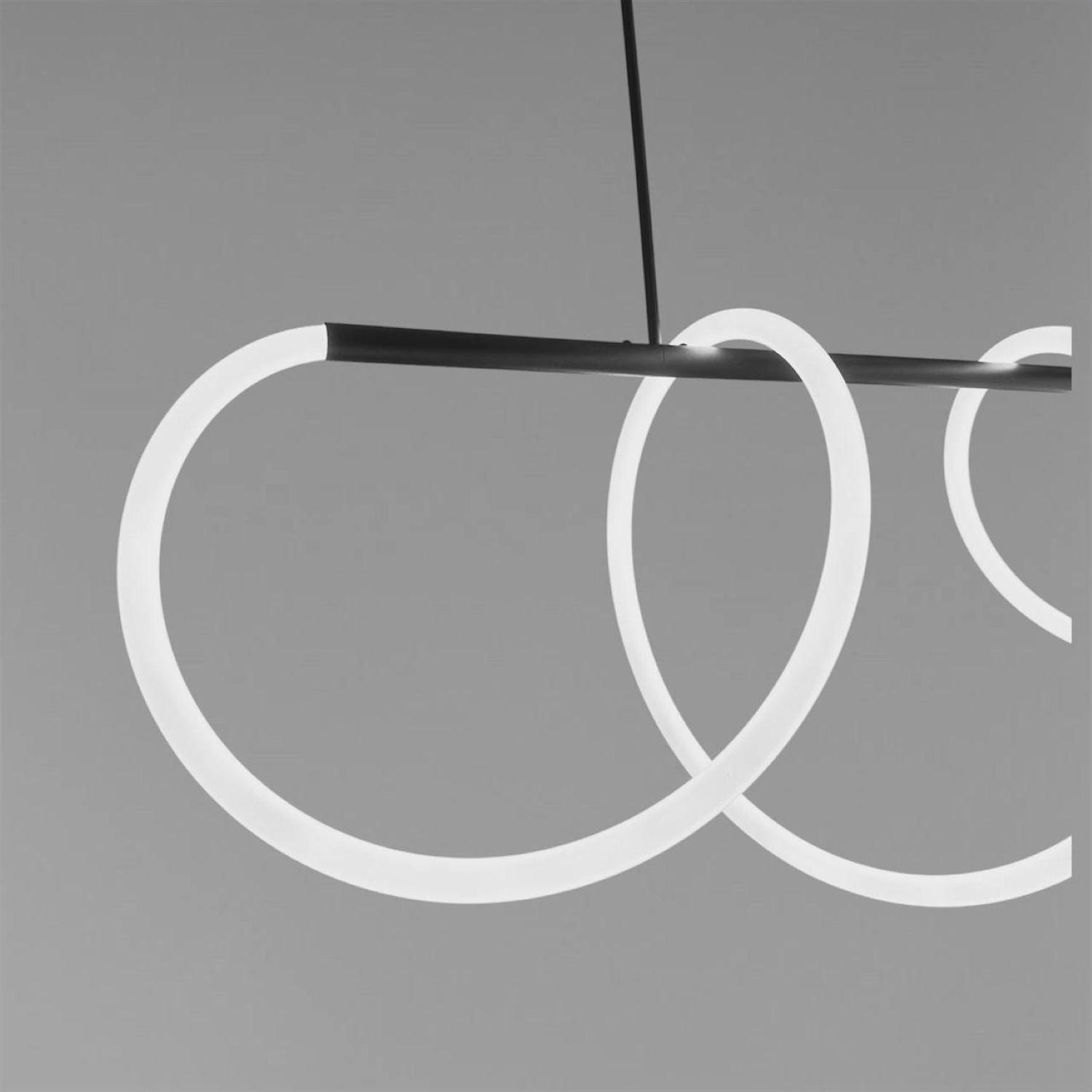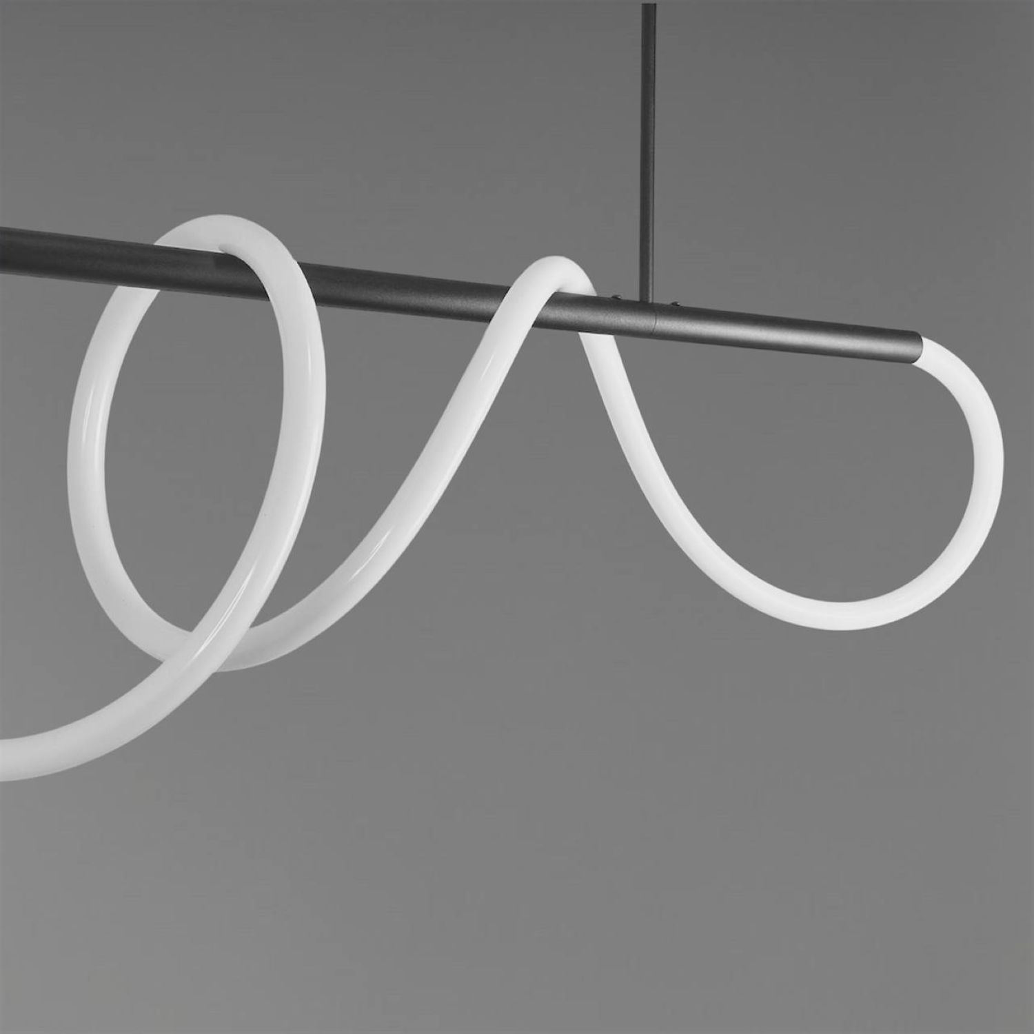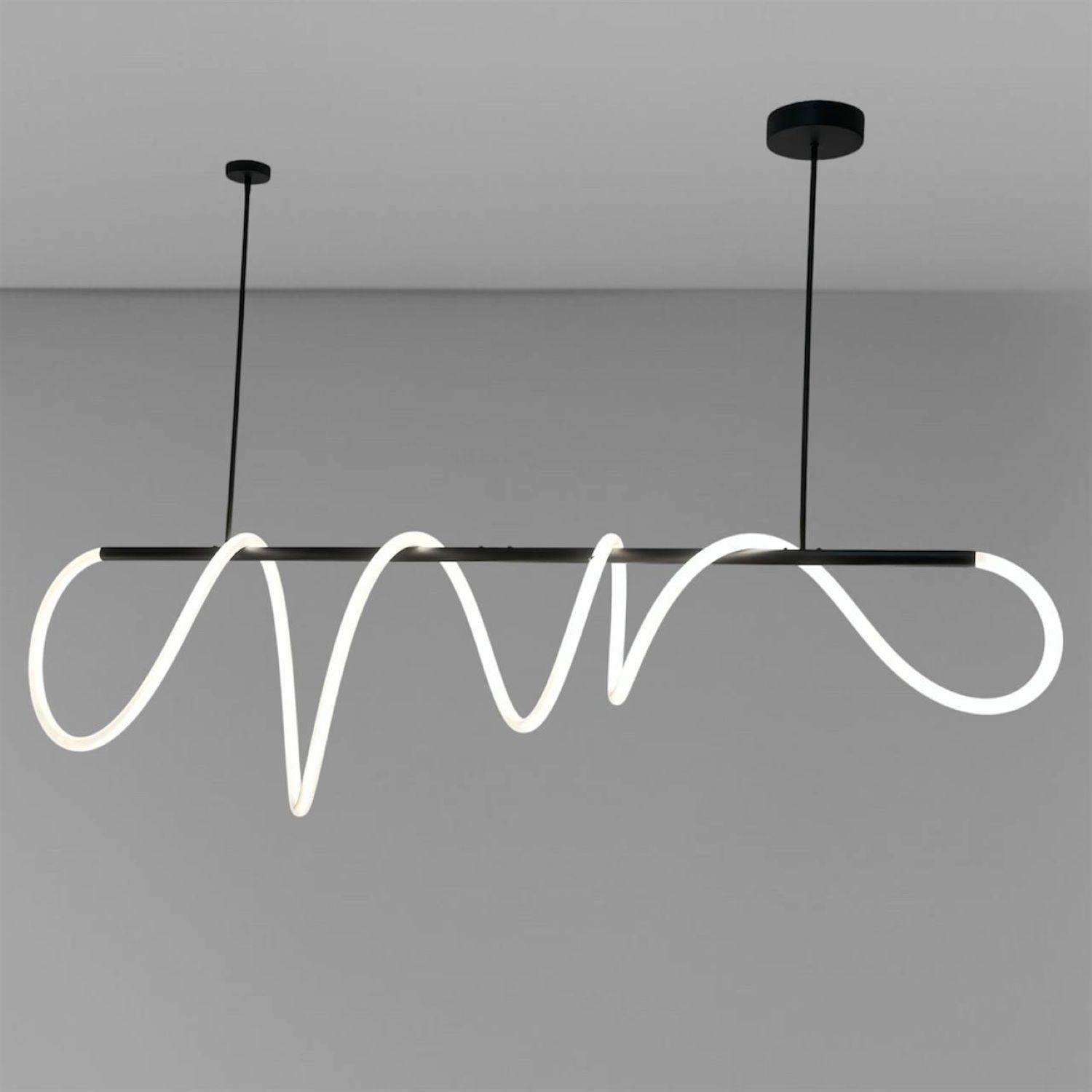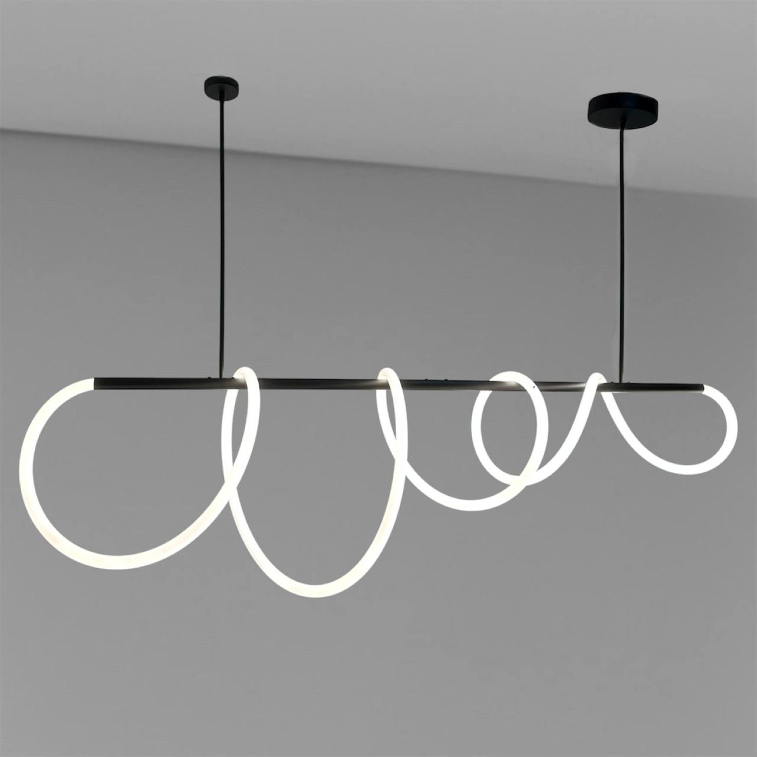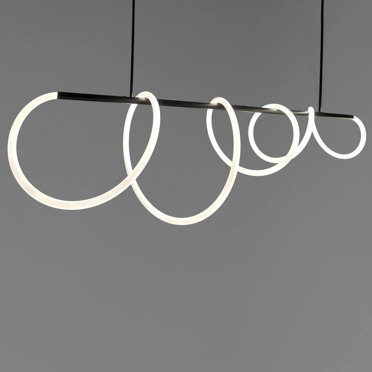 Оригінальна люстра Nordik W являє собою горизонтальний металевий стрижень, вільно обвитий LED неоном білого матового кольору 24 мм, всередині якого проходить світлодіодна стрічка. В результаті заломлення світла у включеному стані виходить яскрава неонова дуга, що рівномірно світиться, яка додасть Вашому інтер'єру сучасних фарб.